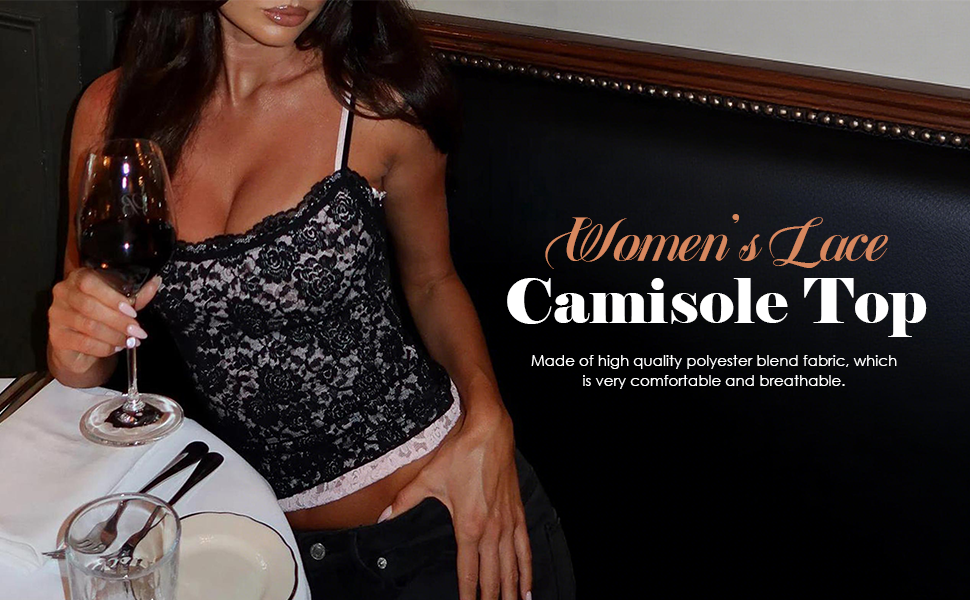 Material: The women's lace camisole top is made of high quality polyester blend fabric, which is very comfortable and breathable. The fabric has a certain elasticity, which can perfectly highlight your body curves and make it easy to put on and take off