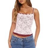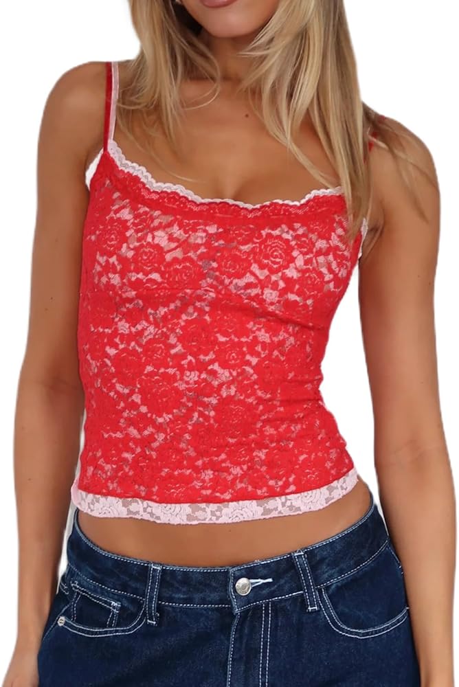Design: Women y2k going out tops, lace tops for women, sleeveless backless tops, solid color, sleeveless, slim fit, lace trim, spaghetti strap. The double layer lace design makes your overall look appear more sexy