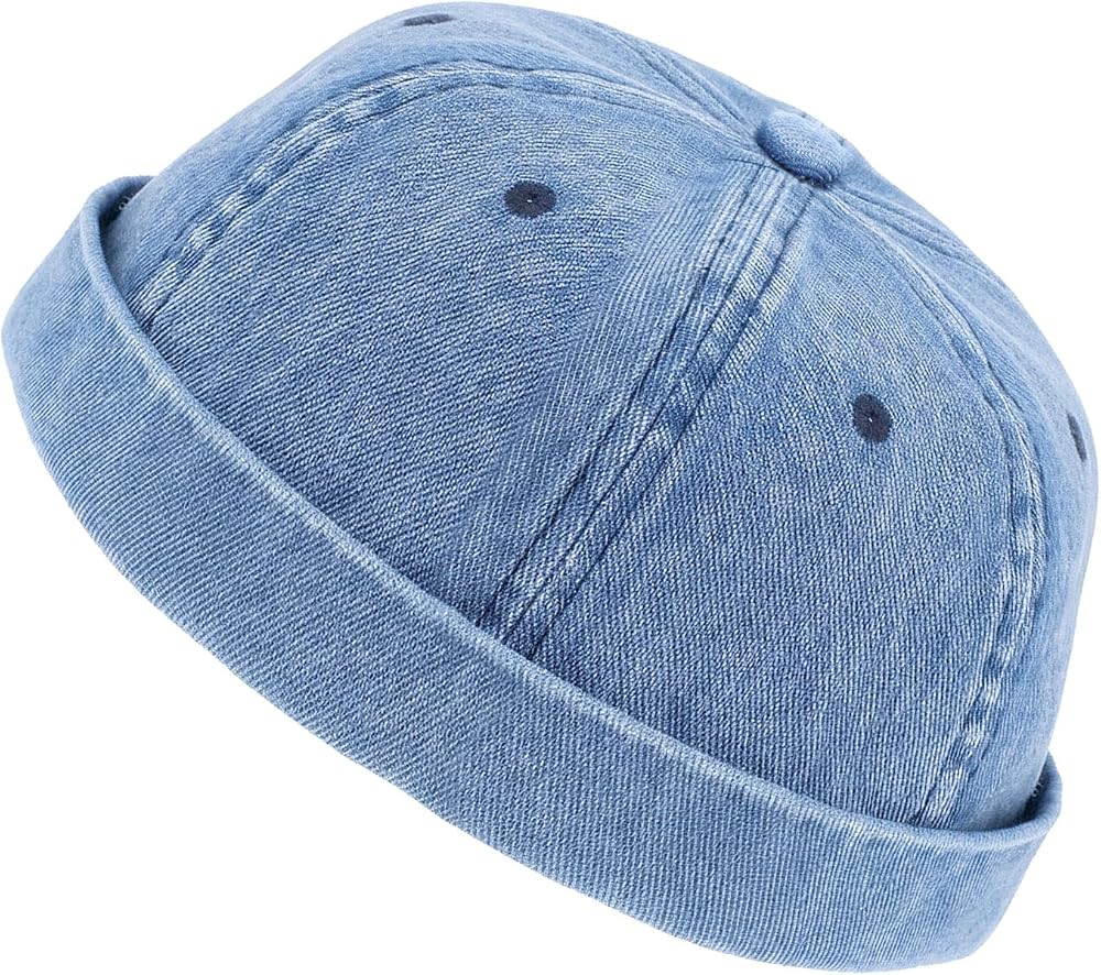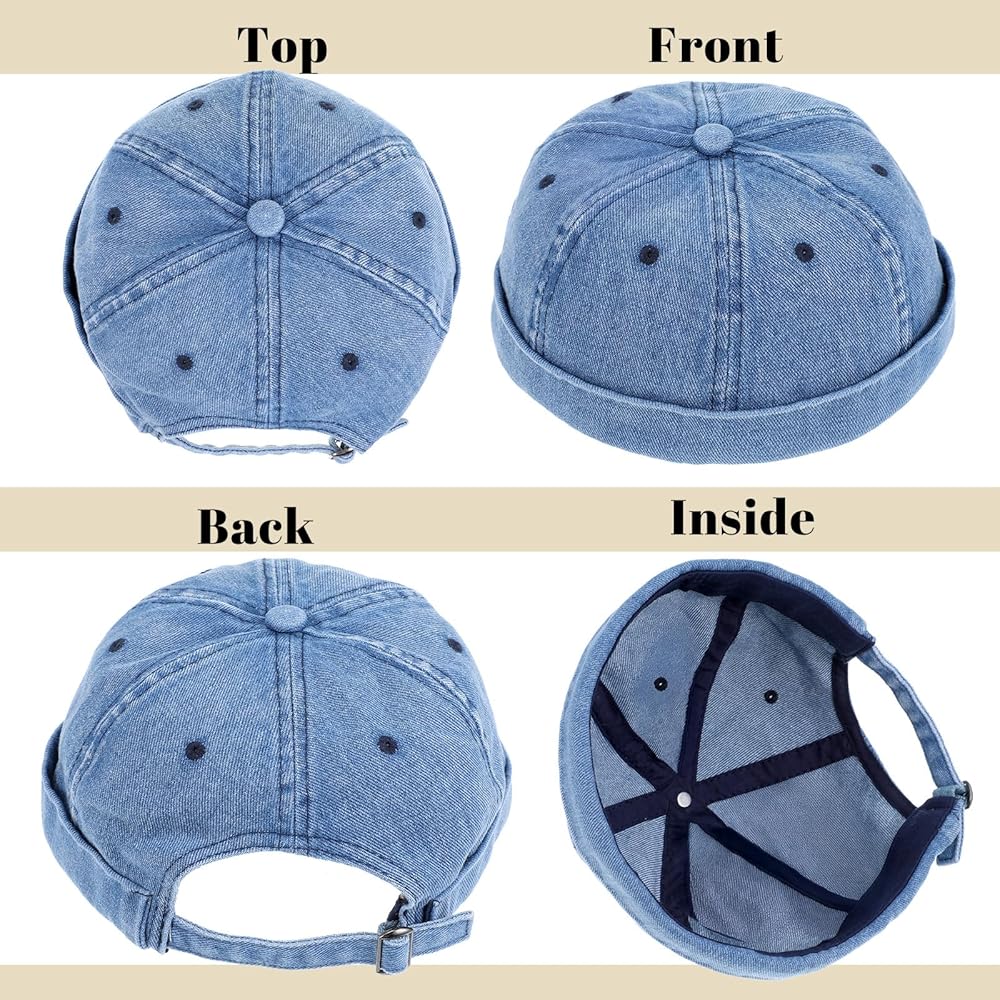 Unique Cowboy Landlord Design: This brimless hats for men combines a cowboy landlord aesthetic with a denim docker hat style. The 6-panel construction enhances stability and shape retention, while the rolled cuff adds a fashionable, three-dimensional touch for a cool and trendy look.