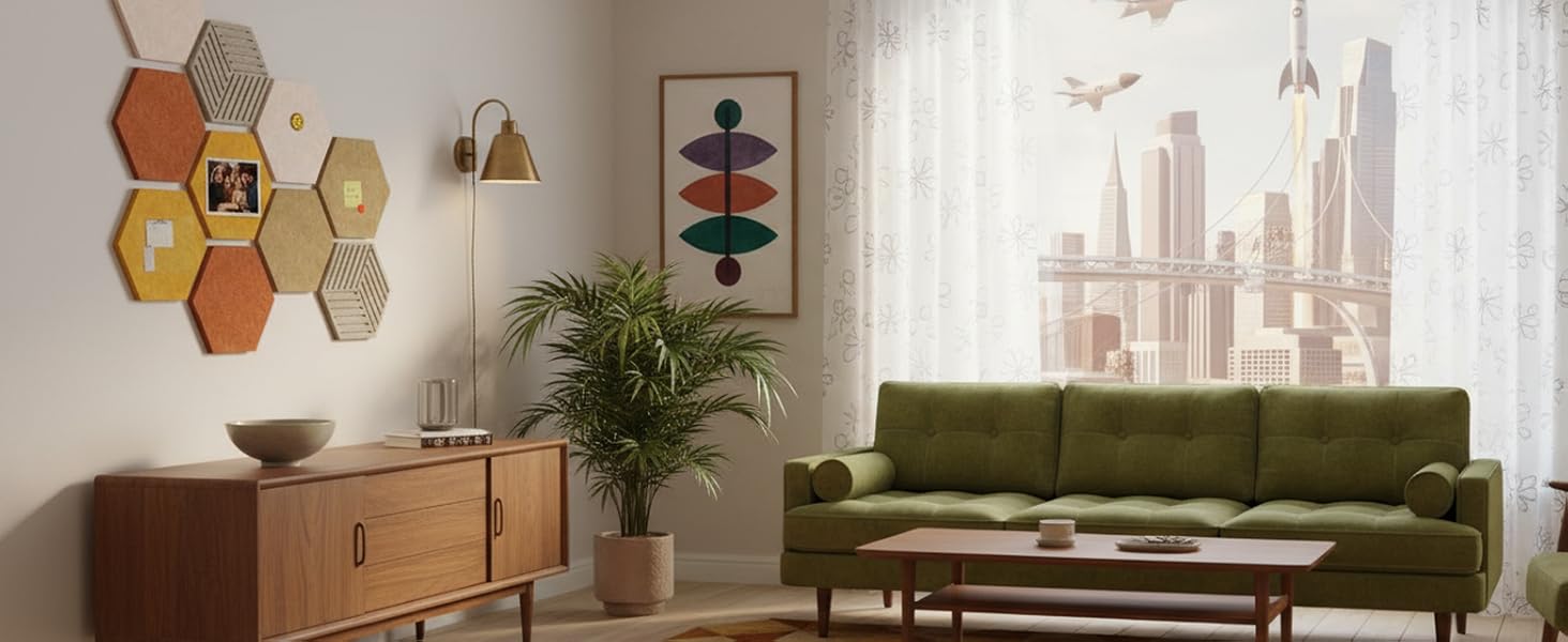 【Creative Geometric DIY Design】Unleash your creativity with our unique hexagon shape, a stylish alternative to basic square boards. These panels connect effortlessly like puzzle pieces, allowing you to DIY custom shapes such as a honeycomb cluster, an arrow, or a scattered modern art display. This flexible interlocking design empowers you to create a one-of-a-kind accent wall in any room—from the living area to a home office—making your space truly unique.