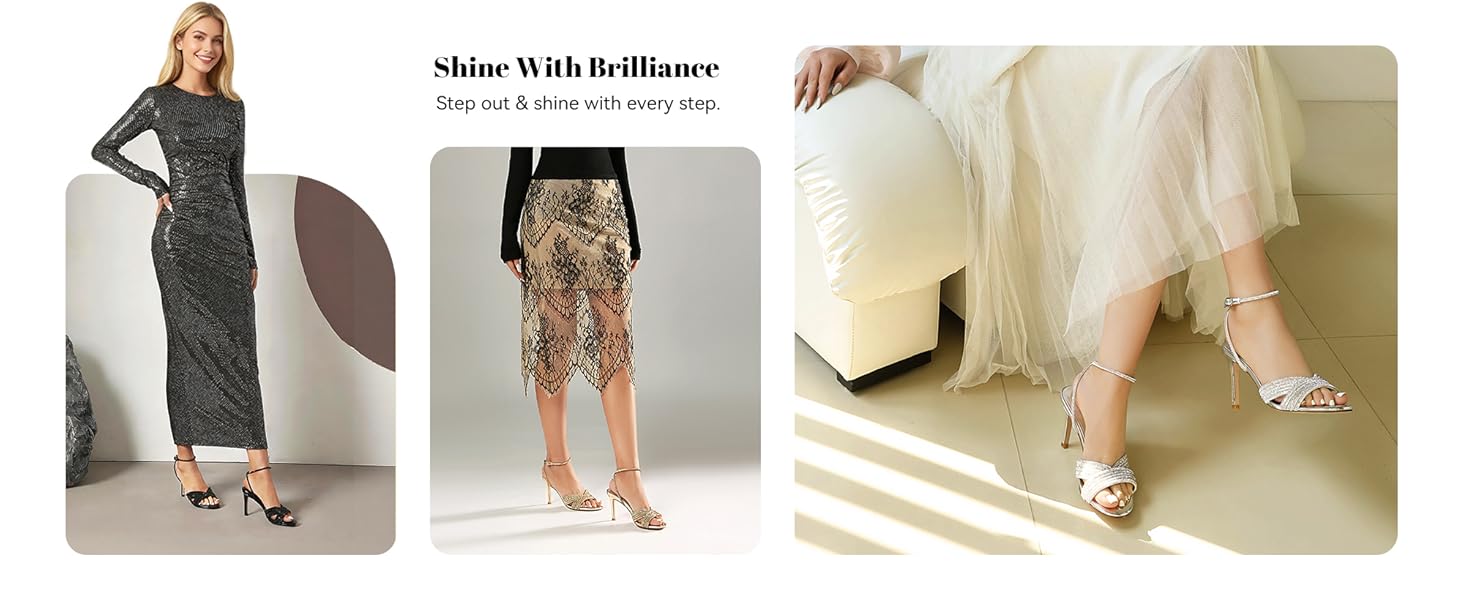 【All-Day Delight】 Look fabulous on your special day with these heels for women with a 3.15 inch high heel and sparkly ankle strap that keeps your feet comfortable from morning to night.