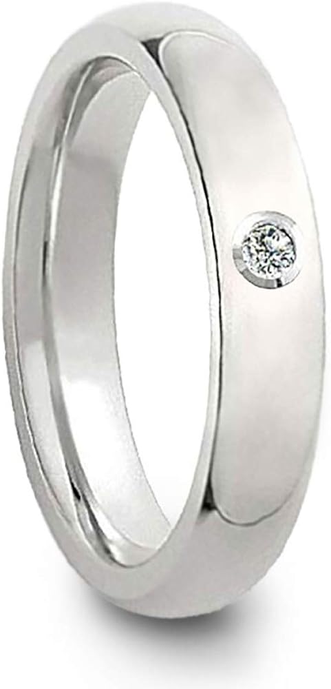 "Celebrate your commitment with the Catalina Diamond Cobalt Wedding Band 4mm. Crafted from premium cobalt chrome, offering a brilliant white luster that rivals platinum, this exceptional wedding band combines timeless elegance with modern durability. Sparkling CZ diamond accents add brilliance and sophistication to this stunning piece. The 4mm width is perfectly proportioned for everyday comfort, while the comfort fit interior ensures the ring slides easily over your knuckle and sits securely on your finger. Whether you are looking for a wedding band, anniversary gift, or promise ring, this piece is designed to be treasured for a lifetime. Each ring is meticulously crafted to the highest standards and backed by our Free Size Exchanges, which includes free size exchanges for life. Your satisfaction is guaranteed."