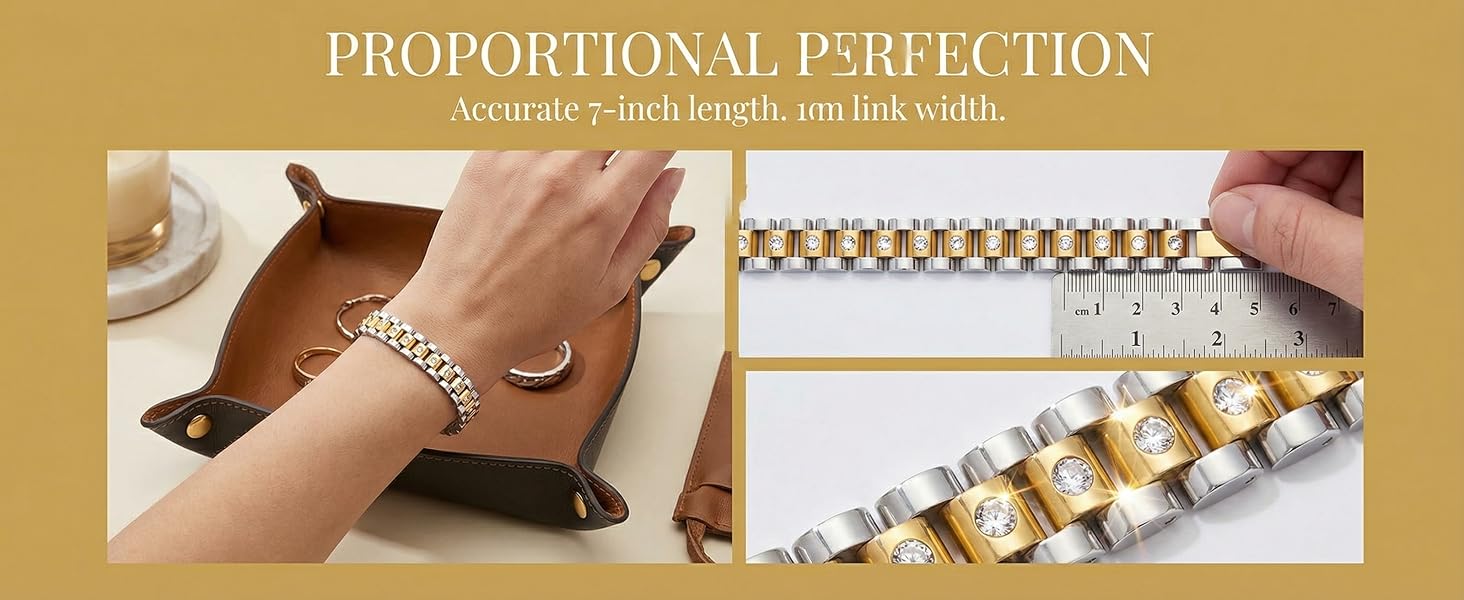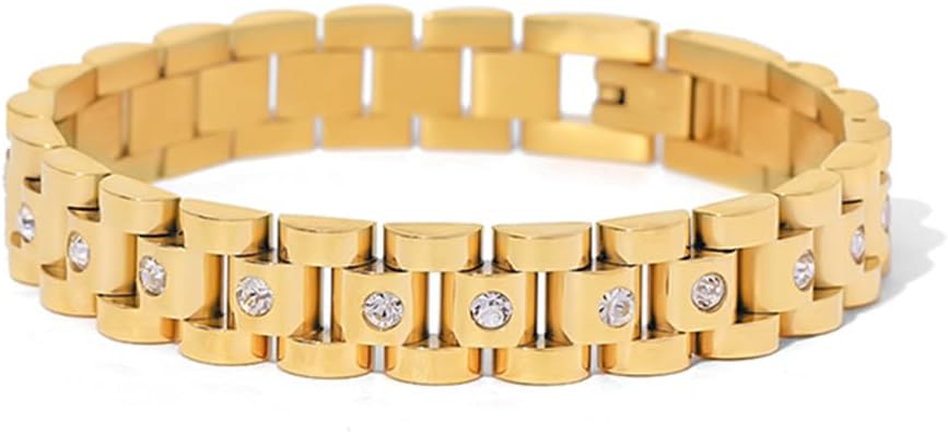 PREMIUM 316L STAINLESS STEEL WITH THICK 18K GOLD PLATING: Crafted from 316L stainless steel with luxurious 18K gold plating (3x thicker than standard plating). The chunky link design features hand-set genuine cubic zirconia stones that deliver brilliant diamond-like sparkle. Two-tone gold and silver finish creates a sophisticated, versatile look that complements any style. Hypoallergenic, nickel-free, and lead-free for worry-free wear on your skin.