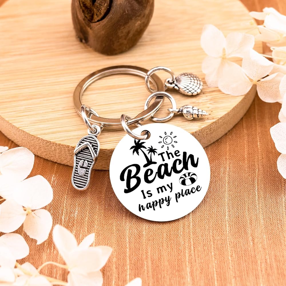 Beach Gifts For Women & Beach Keychain:This Beautiful Beach Keychain Features The Uplifting Message "Beach Is My Happy Place" With Delicate Seashell And Ocean Wave Accents. The Coastal Design Makes It Perfect Beach Gifts For Women Who Love The Shore, Creating a Daily Reminder Of Sunny Beach Days And Ocean Breezes.