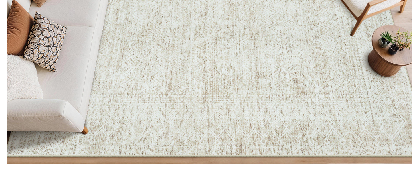 Ultra Soft Rug:This Moroccan Boho beige rug low-pile combines soft faux wool fibers with a 0.2-inch height for comfort. The tight weaving technique minimizes shedding and edge fraying