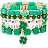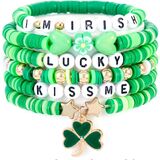 St. Patrick's Day Irish Shamrock Lucky Clay Beaded Bracelets for Women