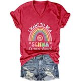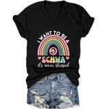 Funny Teacher Shirts Women I Want to Be a Schwa Graphic V Neck T-Shirt Literacy Teacher Tee Reading Teach Life Tshirt in Kuwait