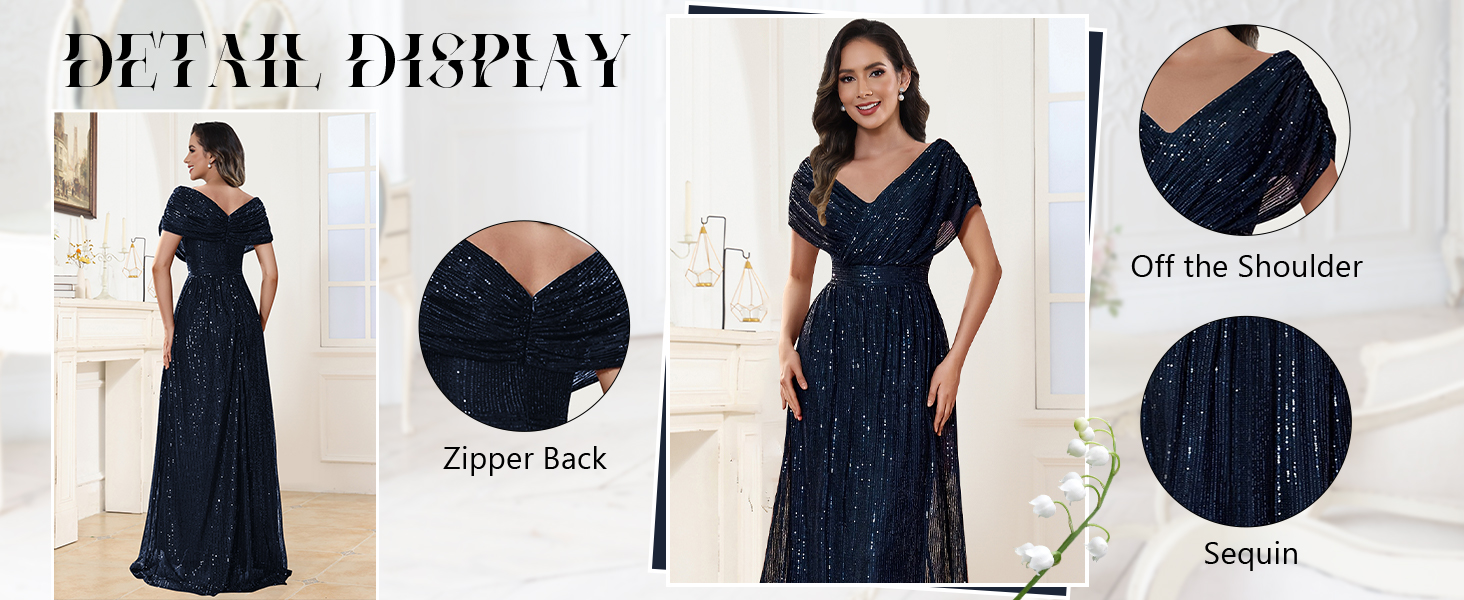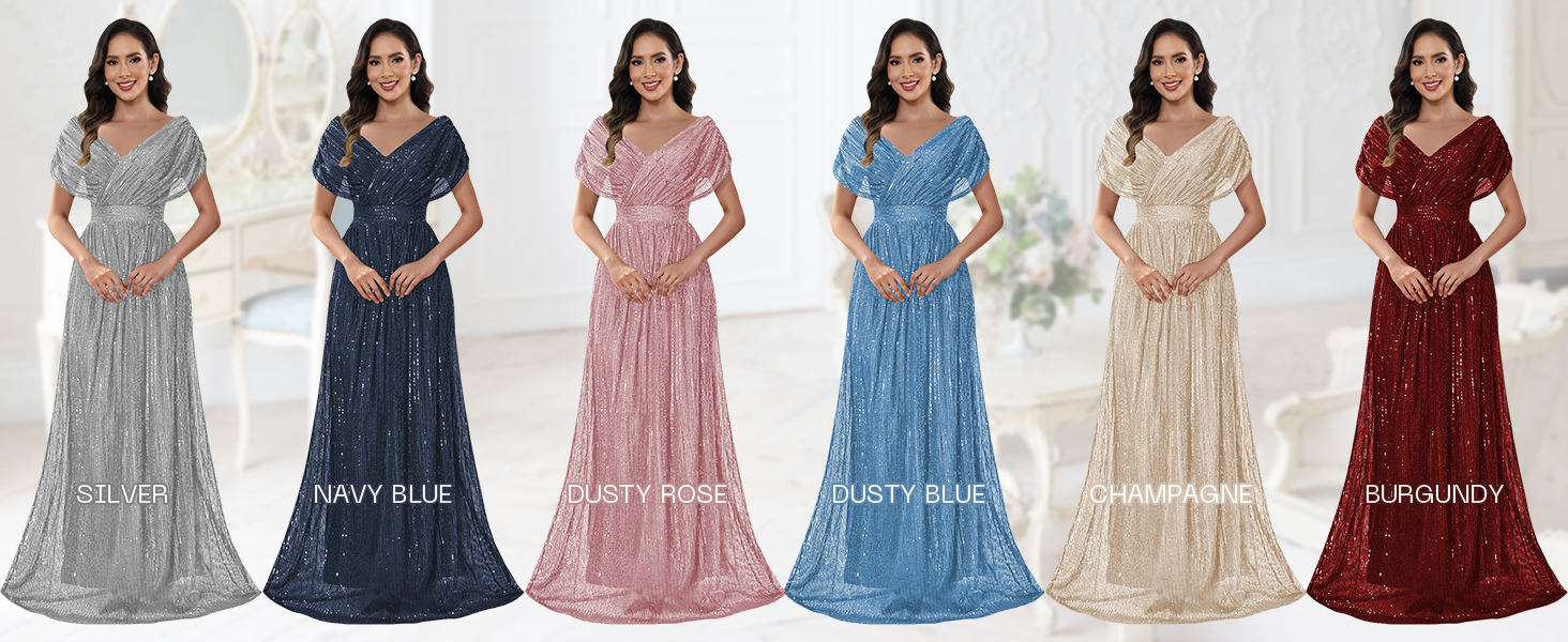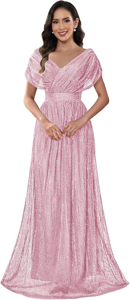 Feature:Sequin Mother of the Bride Dresses, Long V Neck Formal Evening Gowns, Cap Sleeve Mother of the Groom Dresses, A Line Elegant Wedding Guest Dress, Sparkly Cocktail Party Dress