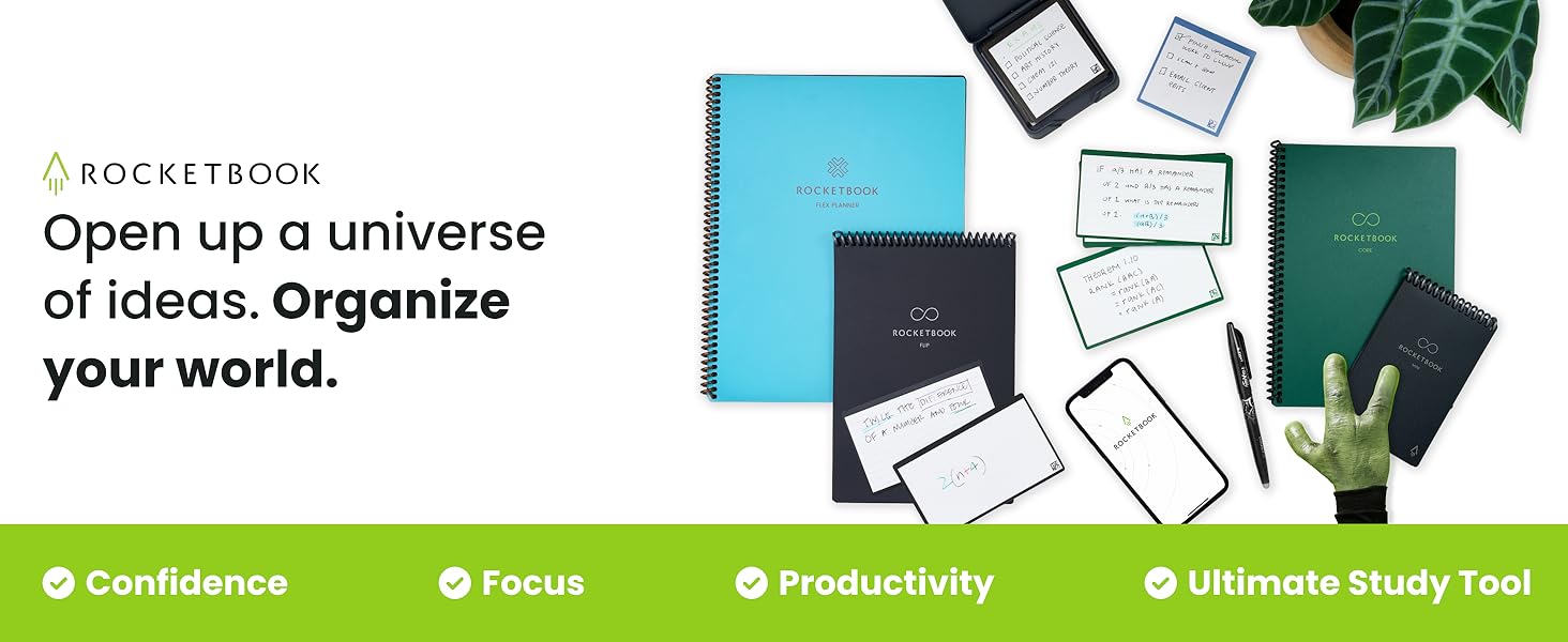 Scan, Save & Organize Your World – Use the free Rocketbook app to digitize your notes instantly. Capture, organize, and access your ideas anytime for smarter studying and planning.