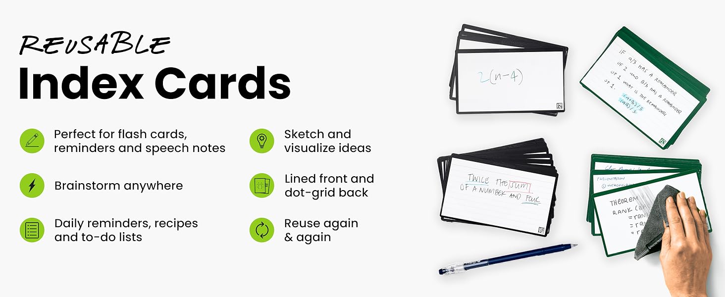 Perfect for Study & Professional Use – Ideal for students, educators, and professionals. Use for flashcards, presentations, brainstorming, or even jotting down recipes. Take your study system to the next level with reusable cards.