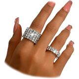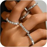 Stacking Silver Sparking Rhinestone Ring Set: These sparkle rings with dainty bling elastic zirconia knuckle rings. Features trendy simple stretchy styles, plus retro exquisite details—ideal as daily costume jewelry for a chic multilayer crystal ring look