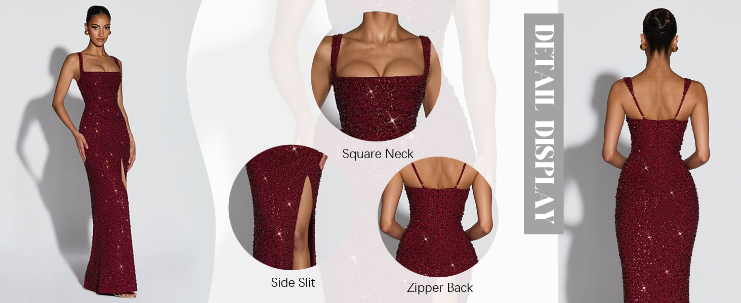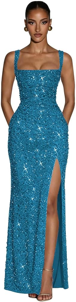 Feature:Sequin Prom Dresses for Women Teens, Square Neck Mermaid Formal Evening Dresses with Slit, Long Corset Ball Gown, Sparkly Bodycon Pageant Dresses