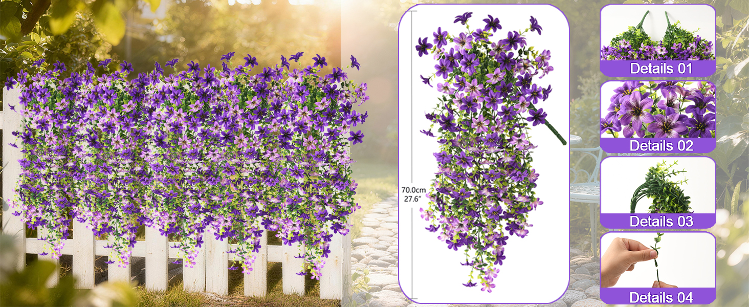 Lifelike Artificial Greenery Decoration: Fake hanging flowers can be used both indoor, like wall, bedroom, living room, kitchen, staircase, privacy hallways, and outdoor, such as balcony, swing stand,and at party such as baby shower, which is making your life full of beauty and surprise.