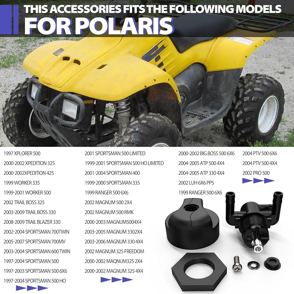 Compatible with Polaris part # 7052161, 3-Way fuel shutoff valve petcock.