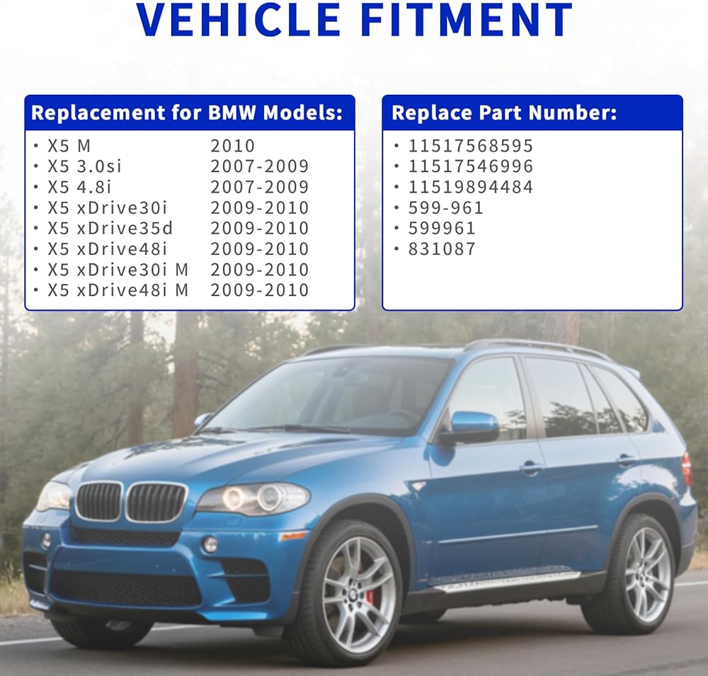 【Fitment】: Replacement for BMW X5 3.0si 2007-2009; Replacement for BMW X5 4.8i 2007-2009; Replacement for BMW X5 M 2010; Replacement for BMW X5 xDrive30i M 2009-2010; Replacement for BMW X5 xDrive30i 2009-2010; Replacement for BMW X5 xDrive35d 2009-2010; Replacement for BMW X5 xDrive48i M 2009-2010; Replacement for X5 xDrive48i 2009-2010