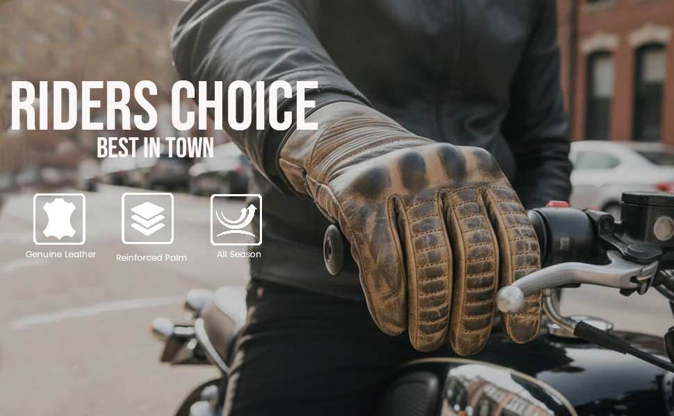 SECURE GRIP IN ALL CONDITIONS: Our premium leather motorcycle gloves are equipped with advanced anti-slip technology that delivers a firm, non-slip grip on your handlebars. Whether you're cruising through the city or tackling winding roads, these leather motorcycle gloves ensure stable handling and responsive control. Ride safer, ride smarter, with gloves built for superior grip and confidence on every journey.