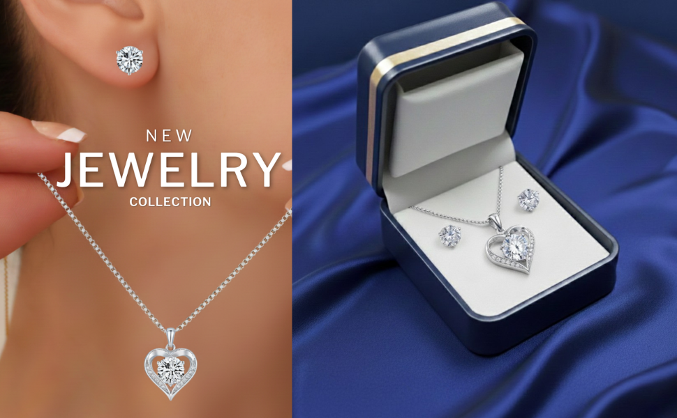 COMPLETE 3 CARAT JEWELRY SET – NECKLACE + EARRINGS Includes 1 carat heart pendant necklace plus TWO matching 1 carat stud earrings (3 carats total). A true full-value set, not small accent earrings.