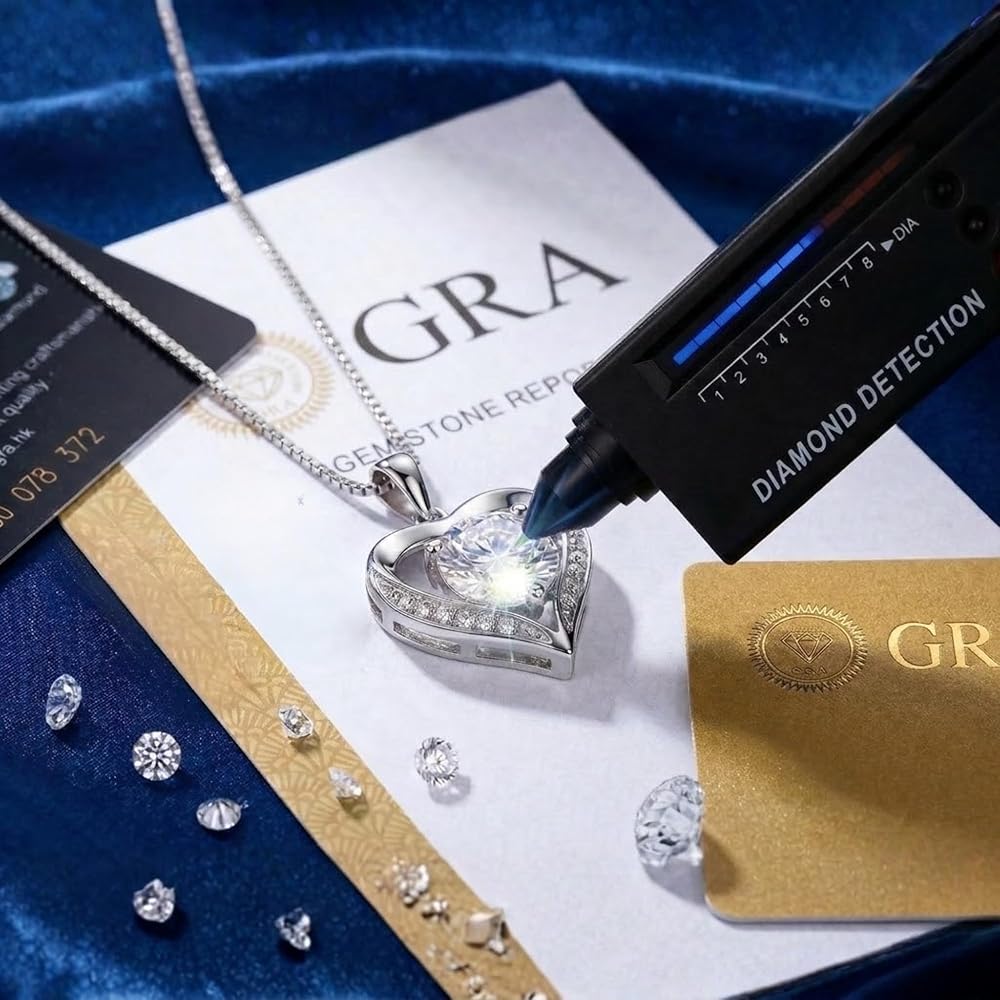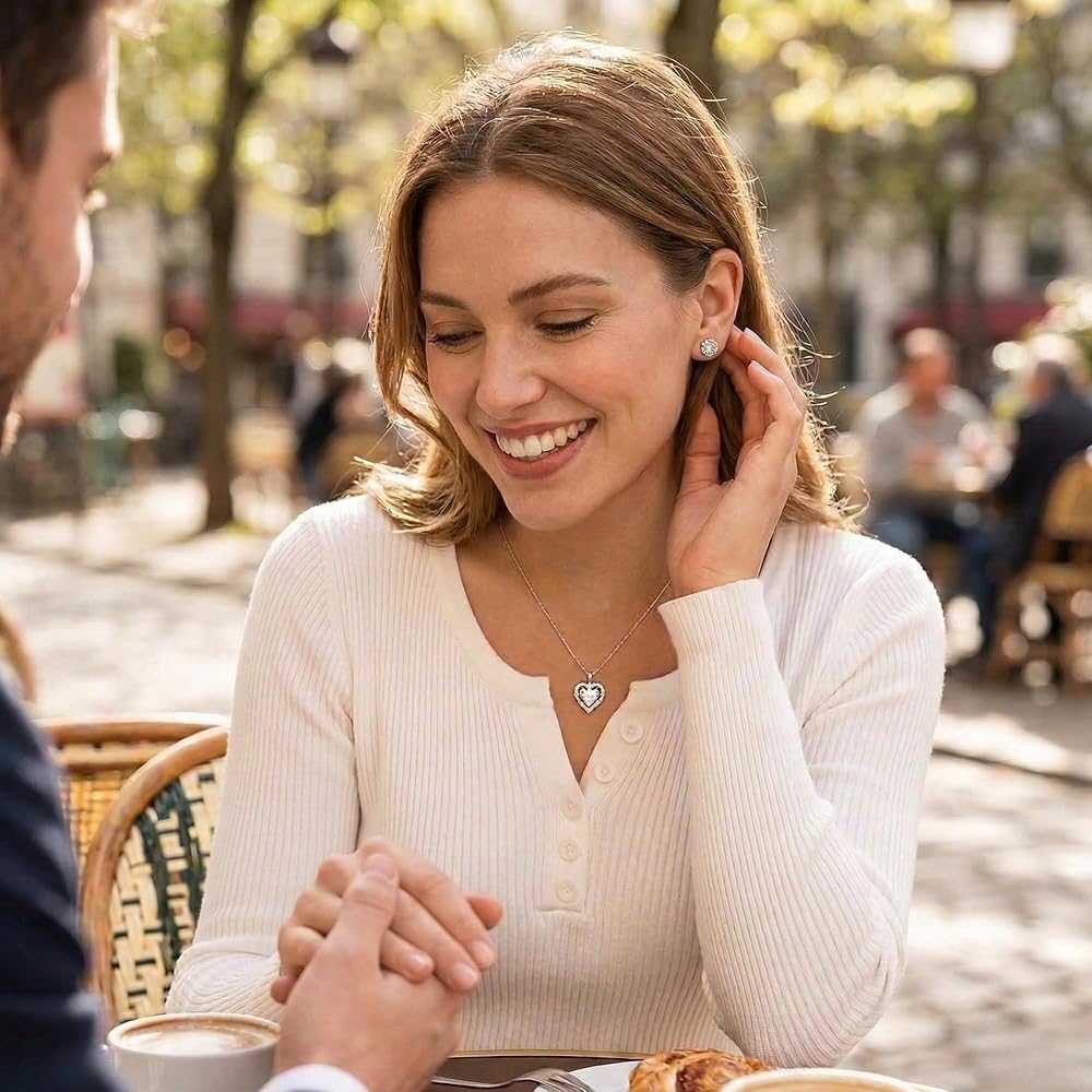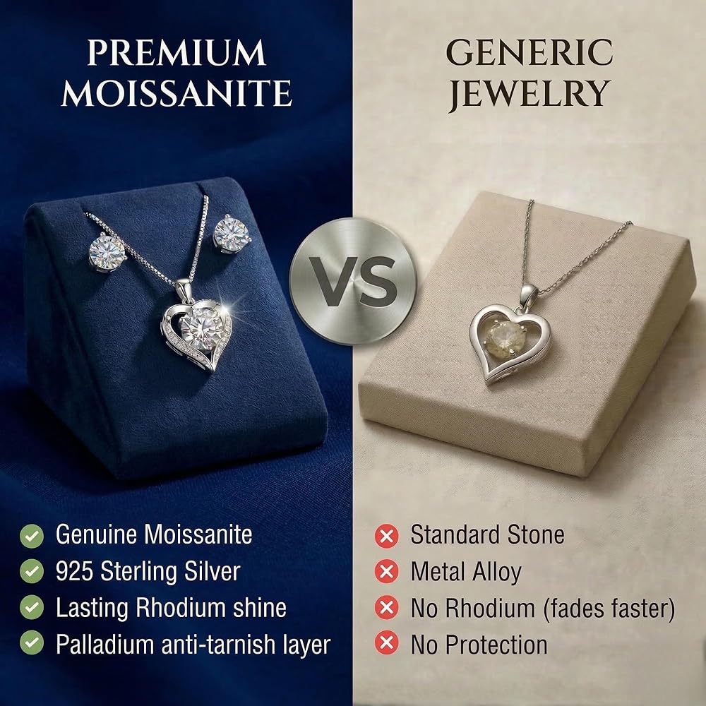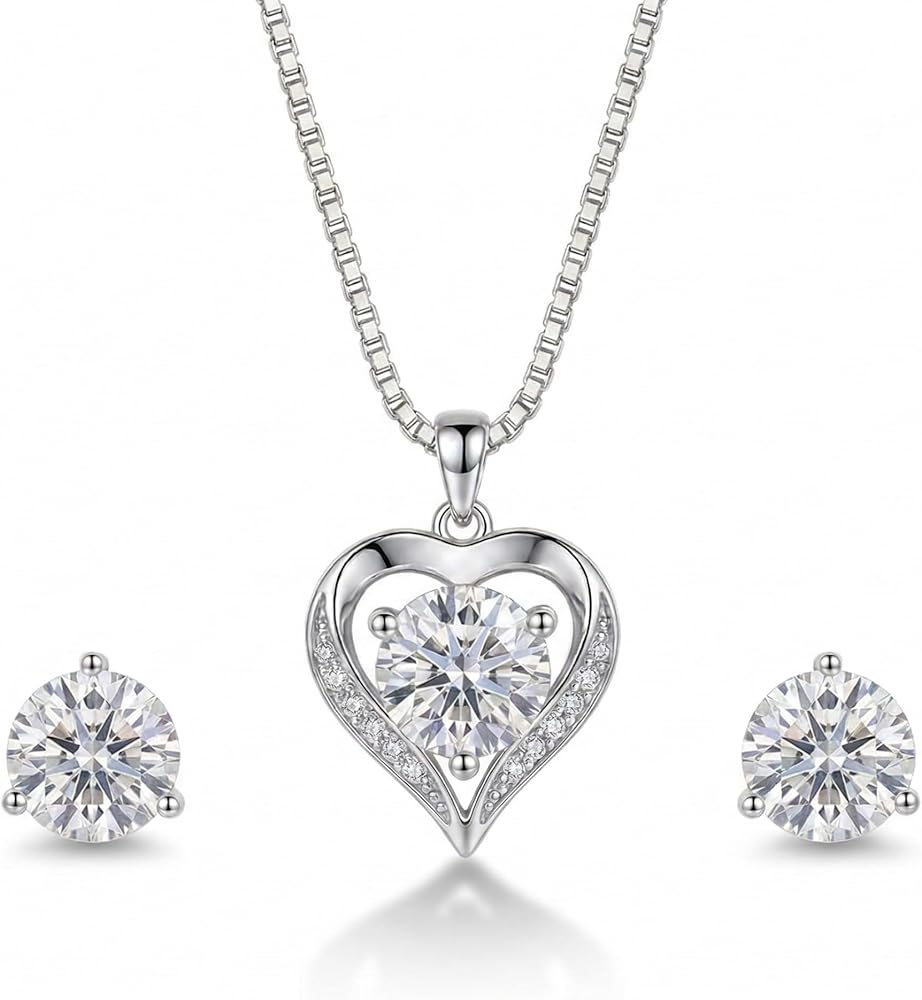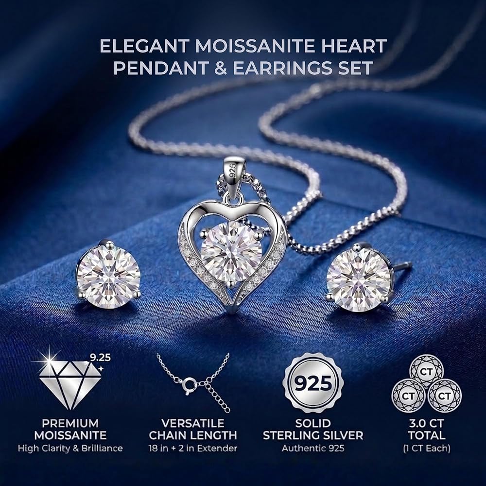 This premium set includes a 1 carat heart moissanite pendant necklace and two matching 1 carat stud earrings, giving you 3 carats total brilliance. A true complete gift set — no extra pieces needed.