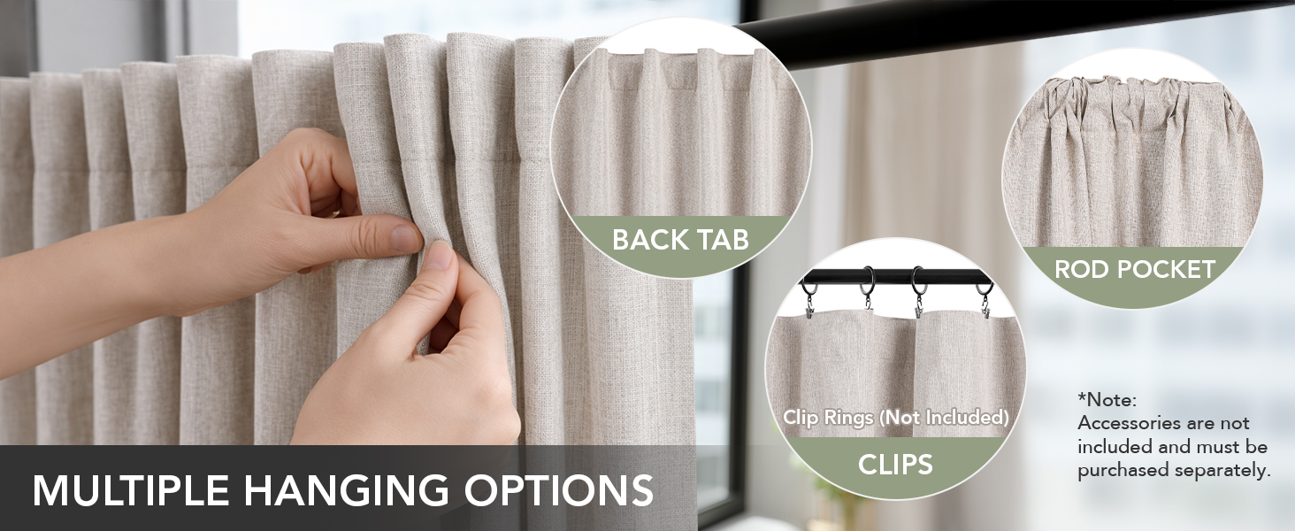 Hidden Tab Top — Fabric tabs conceal your curtain rod completely for a clean, tailored look from every angle; reinforced tab construction withstands daily opening and closing for years; fits any standard rod up to 1.5 inches in diameter without rings or clips.