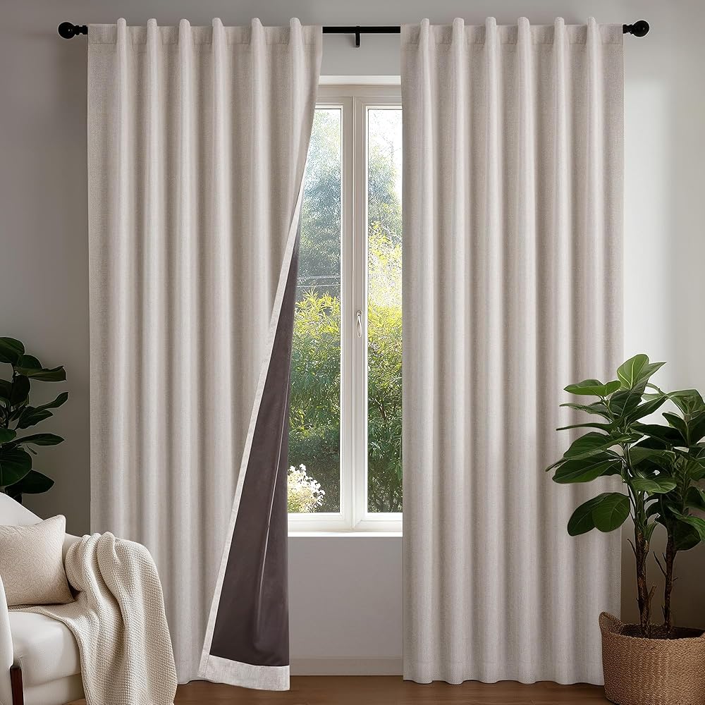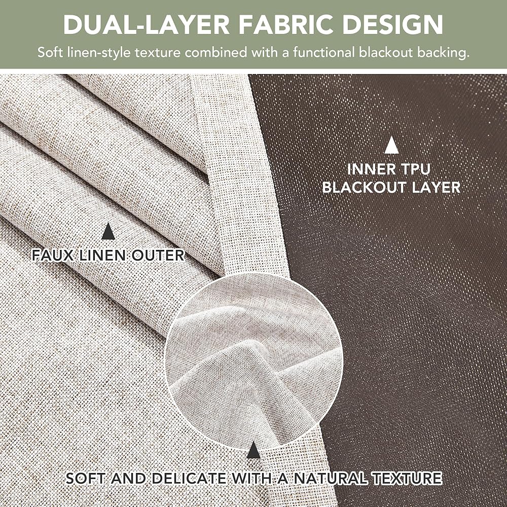 Coffee-Backed Edge-To-Edge Darkness — The distinctive coffee-toned TPU bonded lining eliminates the light halo effect at curtain edges — a problem common with standard white-backed blackout panels; every corner, seam, and fold stays truly dark for uninterrupted sleep.