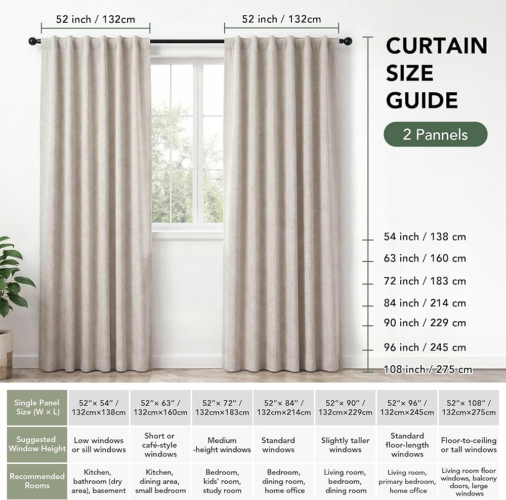 4-In-1 Room Performance — One curtain, four functions: blocks up to 99% of sunlight, reduces outside noise transmission, provides thermal insulation against heat and cold, and adds a decorative focal point — replacing the need for separate blackout liners.