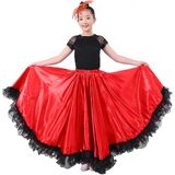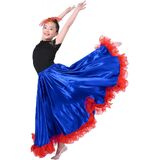 Make a stunning statement on the dance floor with this dramatic flamenco performance skirt. The full dance circle design creates mesmerizing movement and graceful flow during spins and twirls.