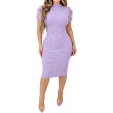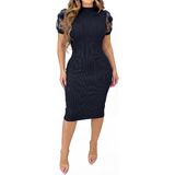 Flattering Bodycon Silhouette: mesh short sleeve, rose flower, lace sleeve, solid color, slim fit, ribbed, knitted, under the knee length, the ribbed midi bodycon dress design accentuates your figure, creating a sleek and sophisticated look that is both stylish and confident.