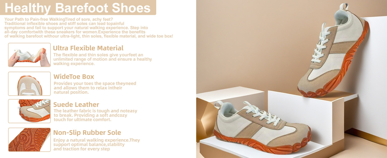 Natural Foot Freedom: Experience true barefoot movement with our anatomical wide toe box and zero-drop sole, designed to promote natural toe splay, strengthen foot muscles, and improve posture for both men and women.