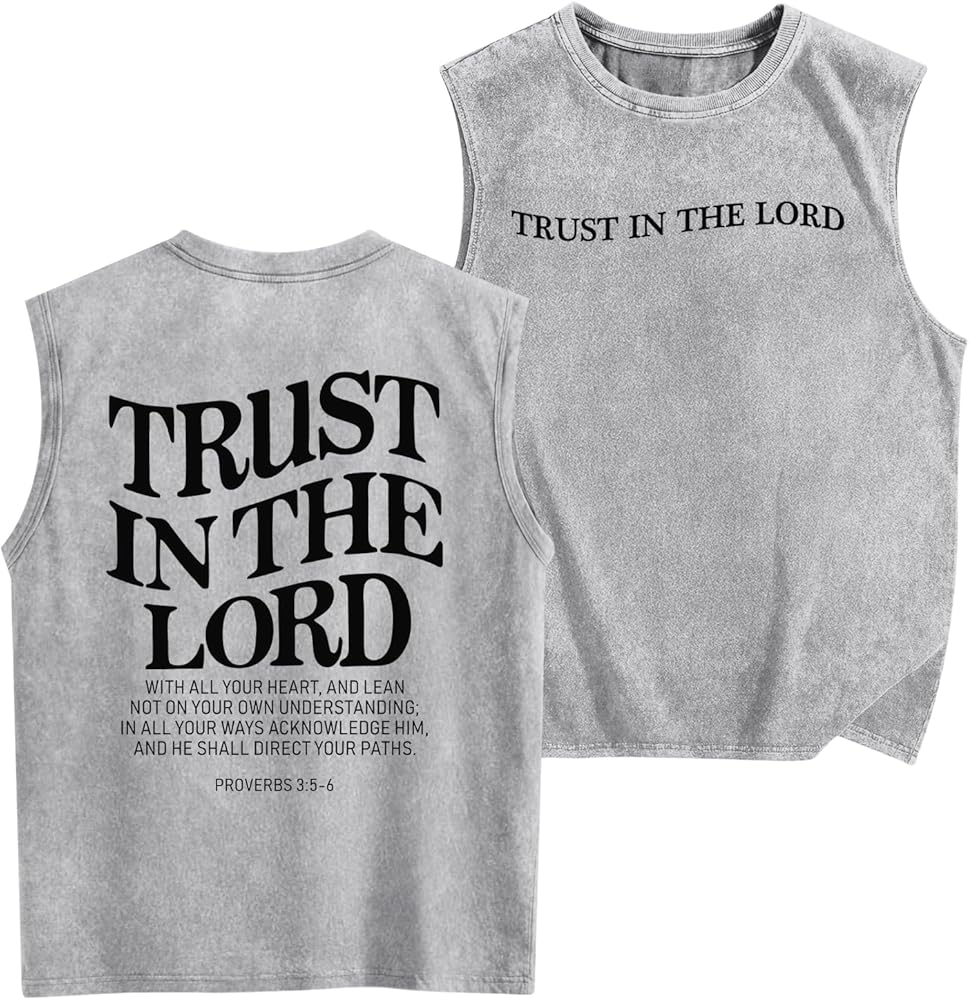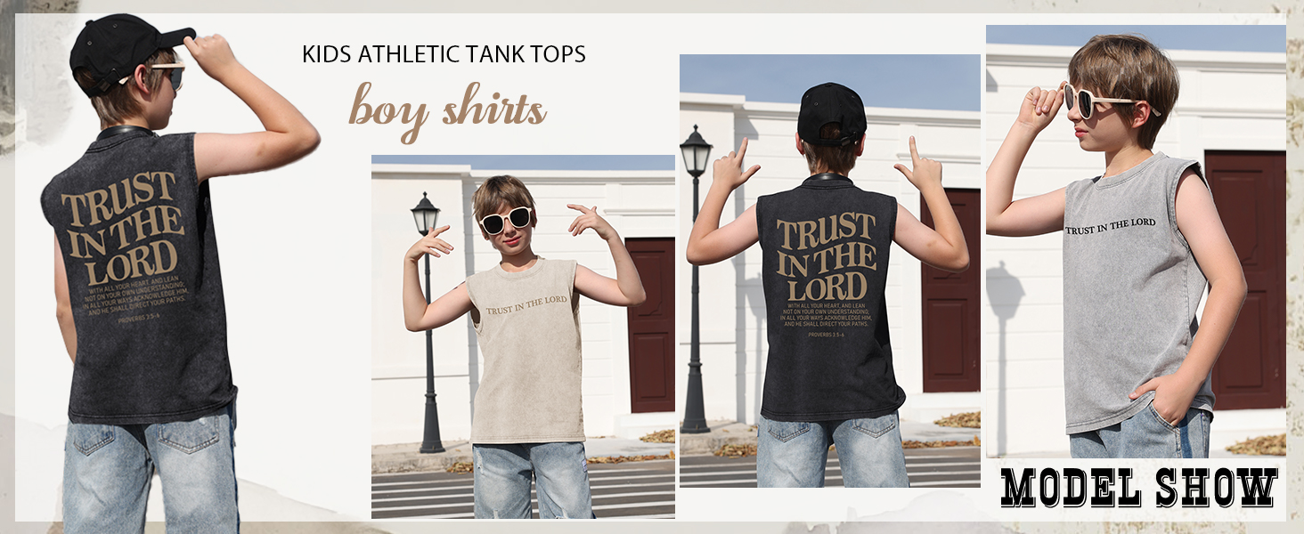 Features: Christian graphic tees for boys, trust in the lord shirts, bible verse shirt boys, boys religious t shirts, boys vintage acid wash tanks, kids athletic tank tops, boys sleeveless undershirts, boys cotton tank tops