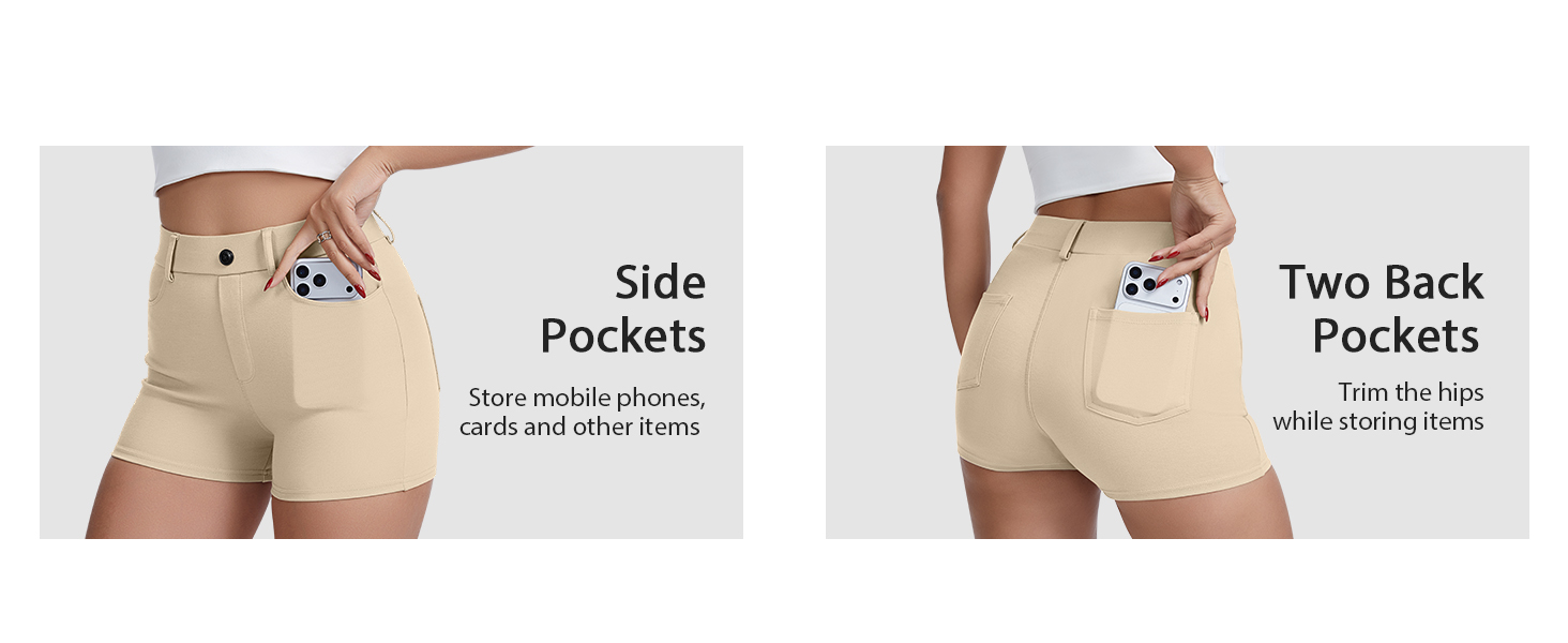 Functional 4 Pockets: Two deep front pockets are perfect for storing cash, credit cards, and your phone while you work. Additionally, two back decorative pockets enhance the hip curve for a stylish look