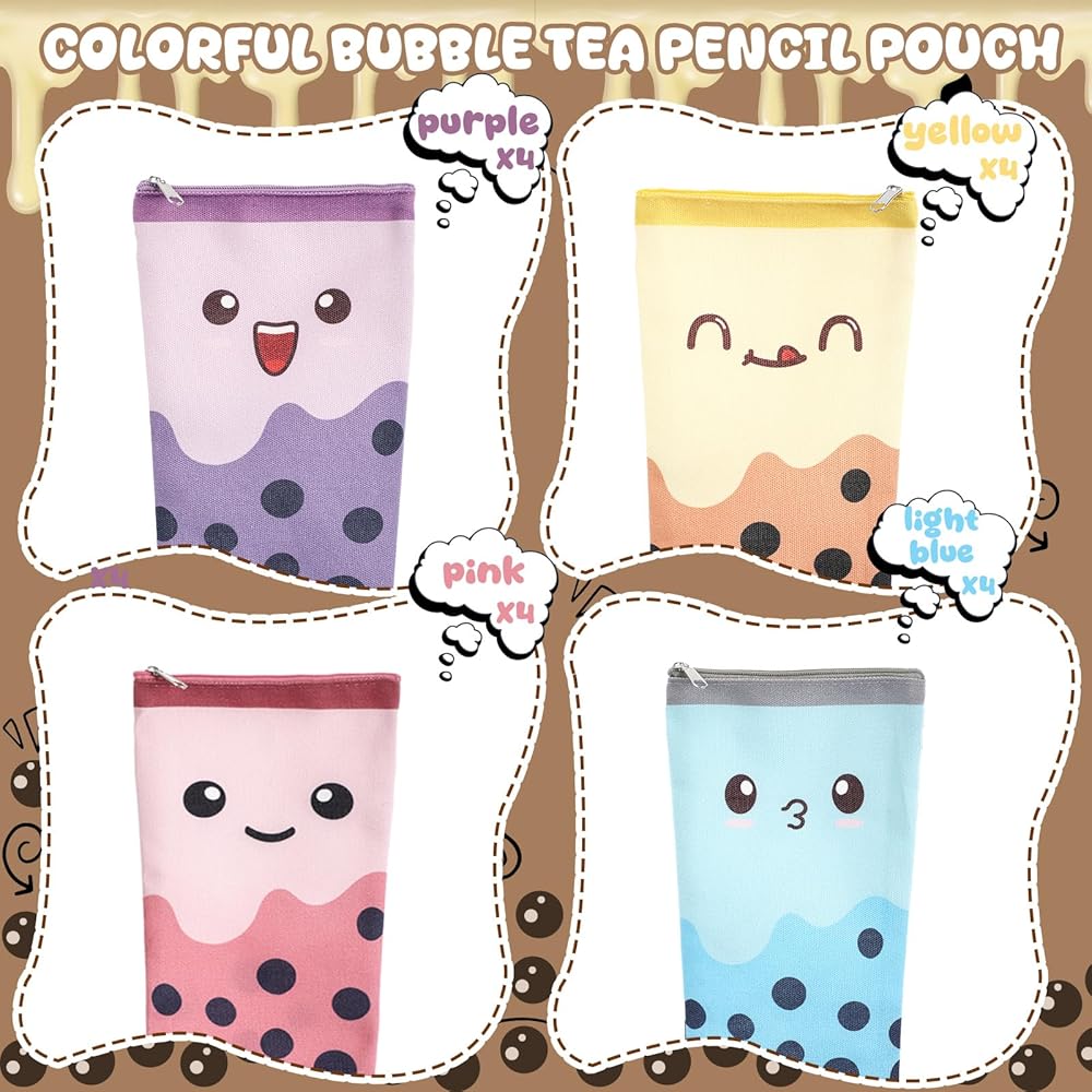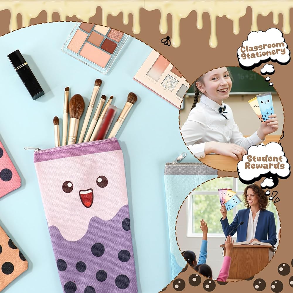 Suitable for pencils, pens, and cute erasers, featuring four color different cute face, and pearl bubble. Stands up and pulls down for easy access.