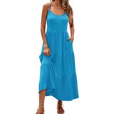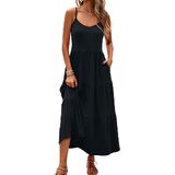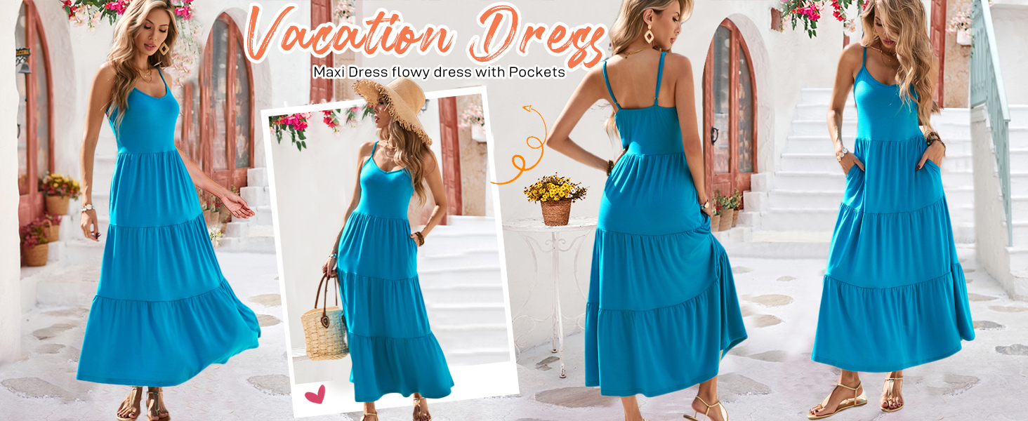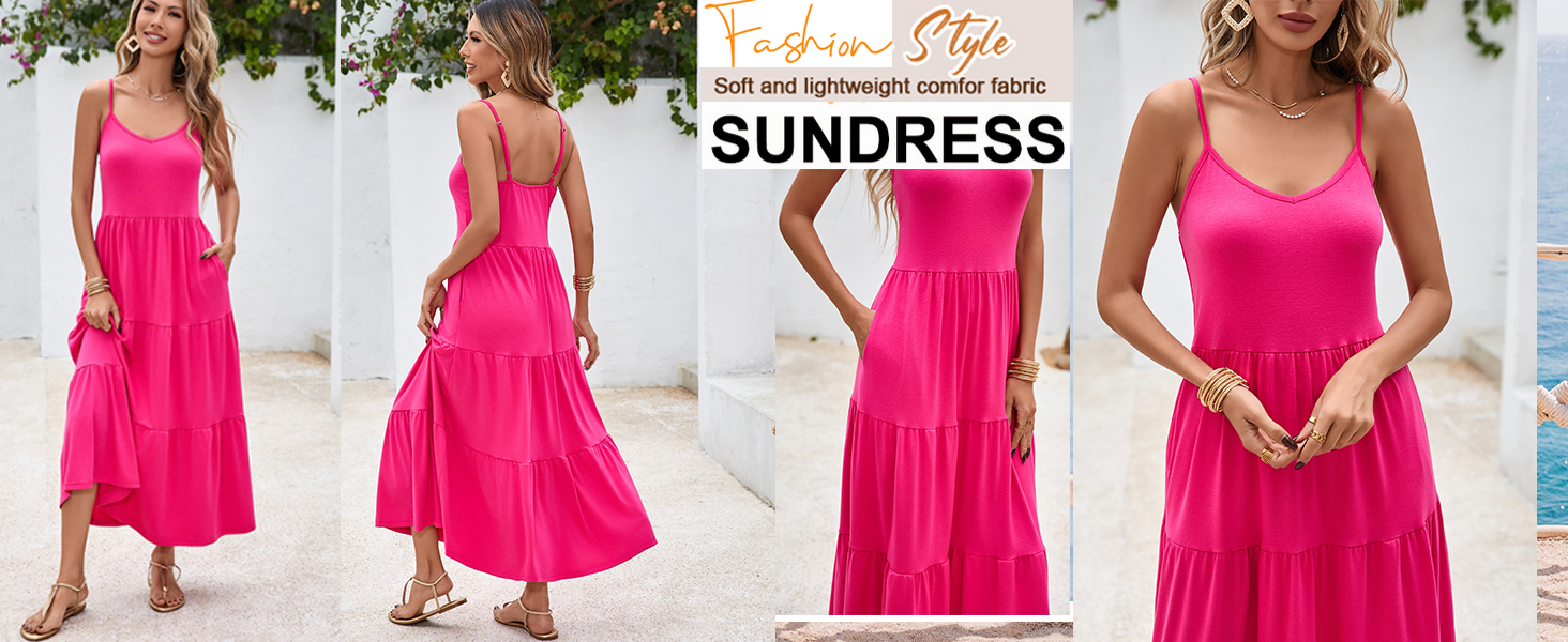 FEATURES: sun dresses women features adjustable spaghetti strap,cami sun dress,shirred stretchy bodice,solid color,stretchy elastic high waist,tiered dress,flared ruffle flowy skirts,Ankle length maxi dress,Casual boho style