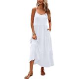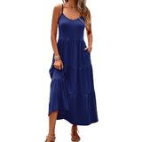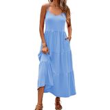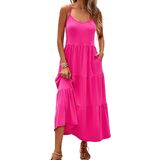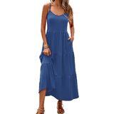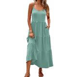 Halife Women's Summer Maxi Dress Casual Sleeveless Spaghetti Strap Tiered Long Beach Sun Dresses