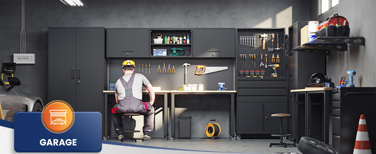 『EASY ASSEMBLING』: 70.87 inch×31.5 inch×15.7 inch (H x W x D). 2 wing doors with a 180°opening angle. The garage storage cabinet is knock-down structure, when you receive it, you need to assemble. The package comes with detailed assembly instructions, easy to assemble.