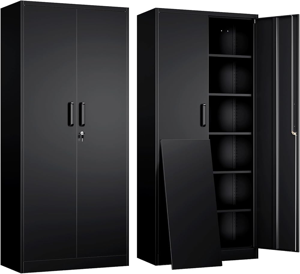 『PRACTICAL DESIGN』:Our tall metal cabinet equipped with lock and 5 adjustable shelves to provide adaptability and convenience. High-grade lock picking to secure valuables, two keys are included. Regardless of what your storage needs are, you have the ability to create a unique storage space to suit them.