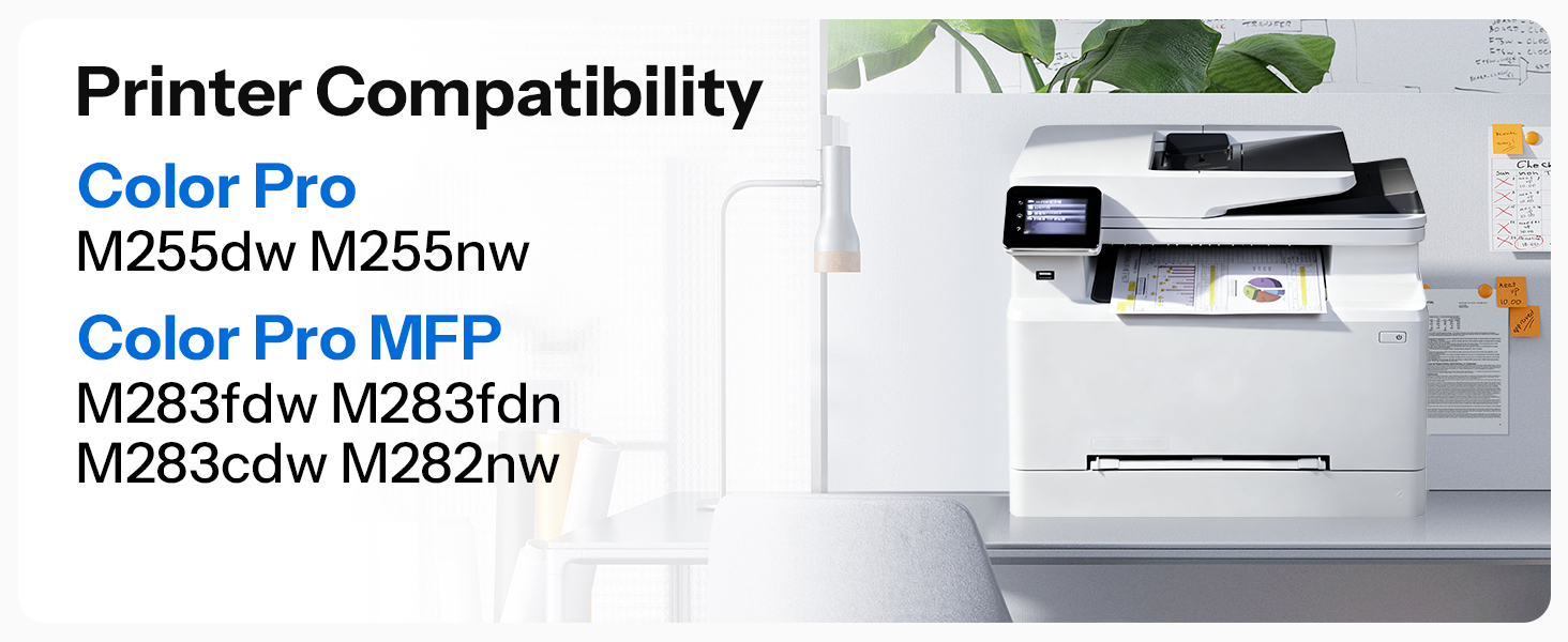 Printer Compatibility : Color Pro MFP M283fdw M283fdn M283cdw M282nw; Color Pro M255dw M255nw Printer.