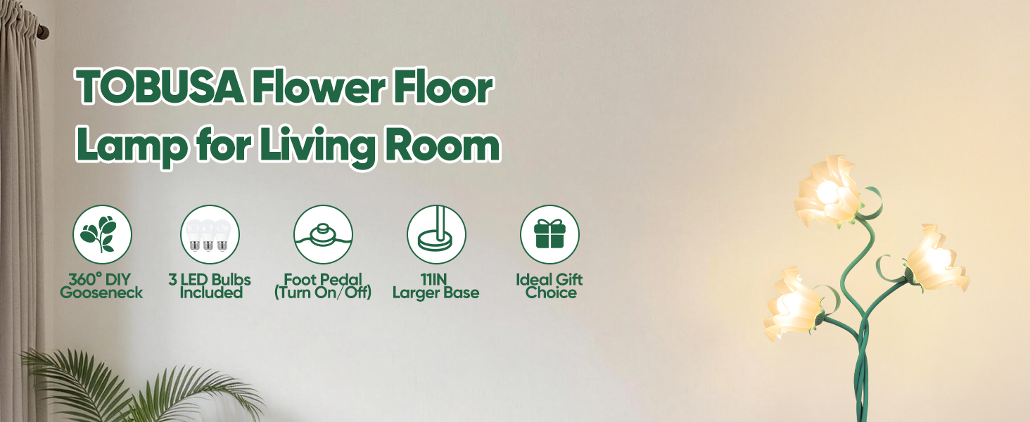 67IN Tall Floor Lamp with 11IN Larger Base: This farmhouse flower floor light stands 67 inches tall, bathing your room in a soft, wide glow, shining up spaces that required bright lighting plus unique taste, living room or bedroom. Its sturdy 11-inch metal base ensures safety around pets and kids. Use this tall floor lamp to brighten a reading nook, create a cafe-style mood, warm up a bedroom, or welcome guests in a shop entry - versatile for various space