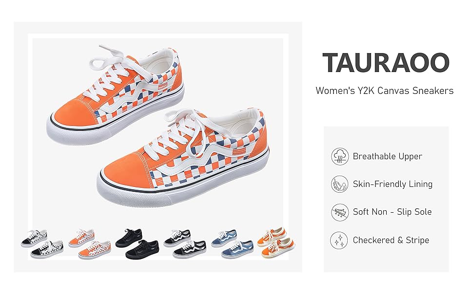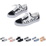❤ Y2K Fashion Vibe: These canvas sneakers boast Y2K trend. With checkered/stripe color-block upper, they blend retro and trendy styles, catching eyes in daily scenes like cafes or street strolls.
