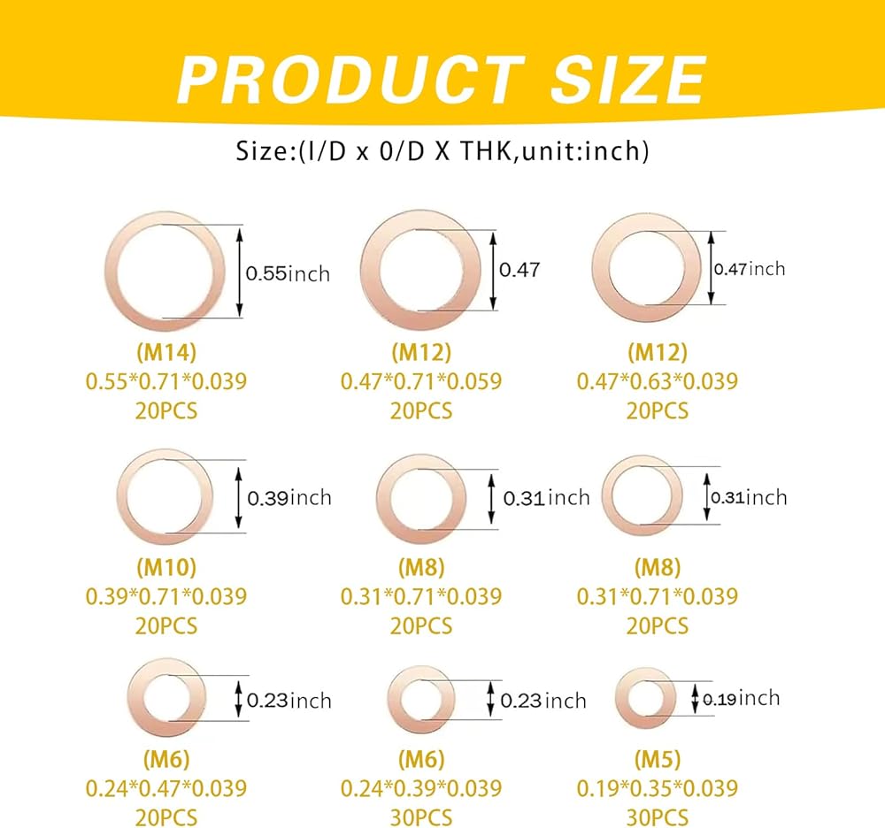 2. The package includes 200 washers in 9 sizes, including M5, M6, M8, M10, M12 and M14, with a storage box, which is organized and easy to identify