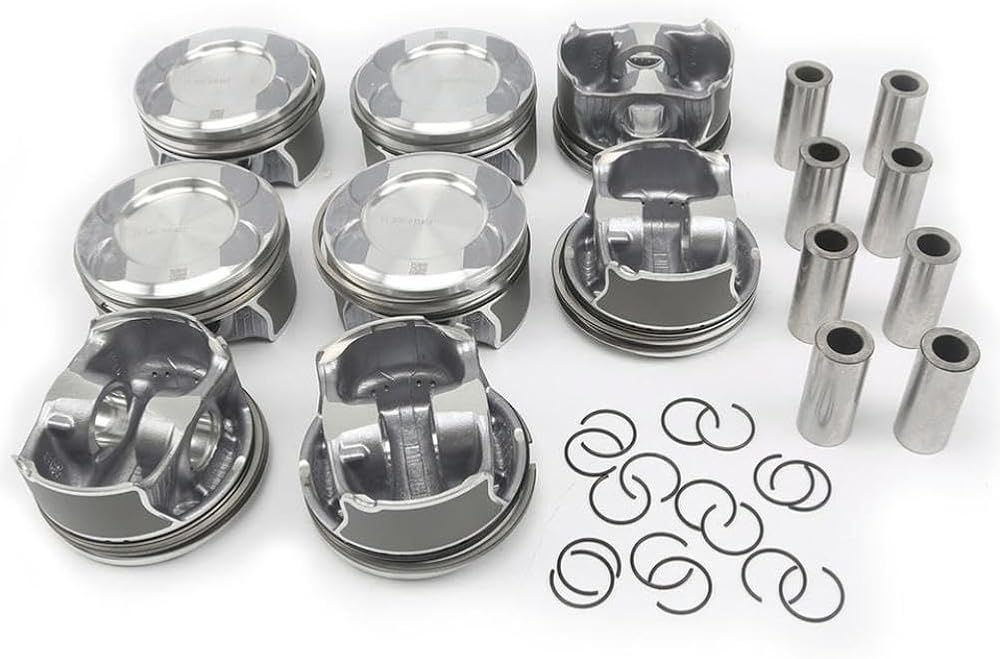 Piston and rings set designed for use with W166 W221 W222 X166 GLS500 S500 E500 ML500 M278 4.6T 4.7T engines.Constructed from forged aluminum for and performance.Features a cylinder bore of Φ92.9mm (3.66 inches) and a pin bolt diameter of Φ24mm with a pin bolt length of 56mm.Includes 8 pieces per kit.Ring thickness is 1.2mm for the first ring, 1.5mm for the second ring, and 2.0mm for the third ring.Designed to fit specific engine configurations and intended to restore proper compression and reduce oil consumption.Engineered for under normal and driving conditions.Suitable for engine rebuilds where piston replacement is required. This is a compatible aftermarket part.References to brands or models do not imply OEM association.