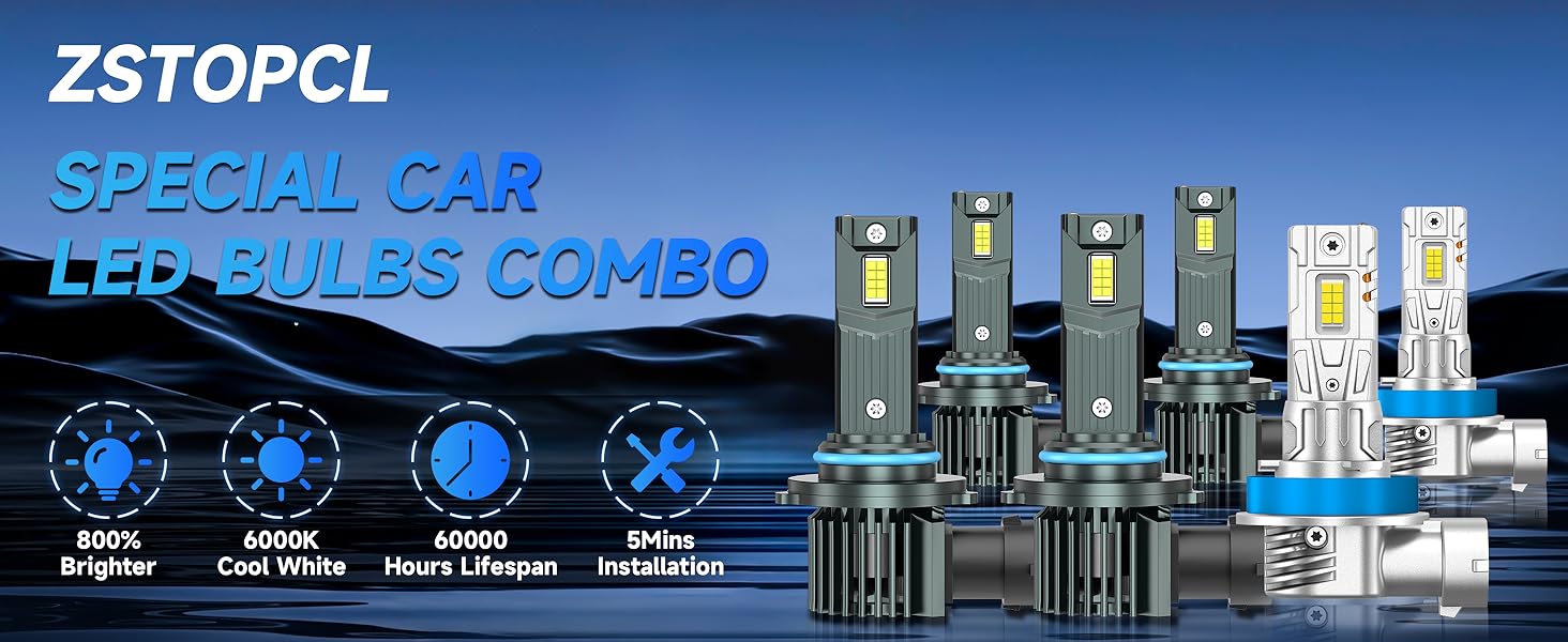 【Upgraded 800% Brightness】ZSTOPCL latest 6000K cool white light bulb adopts a double-sided 16pcs CSP chips design, with a full light pattern and no black spots. It can emit 44000LM, which is 800% brighter than the original car halogen lamp, making your night driving vision clearer and enjoying the fun of night driving