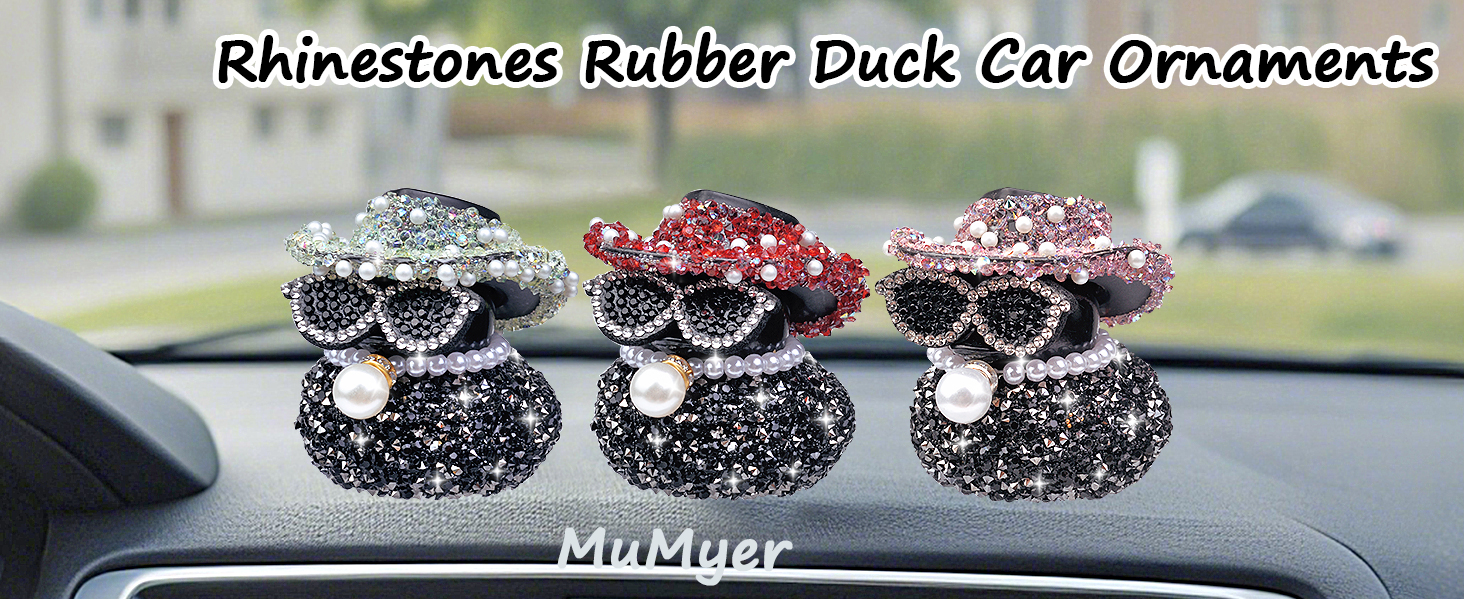 🌟 Glamorous Diamond Duck Design: Stand out with this one-of-a-kind mini car rubber duck, adorned in a sparkling diamond-embellished cowboy hat, a chic pearl necklace, and cool sunglasses. Its eye-catching appearance adds instant personality to any space, making it perfect for turning heads on your car dashboard, desk, or shelf.