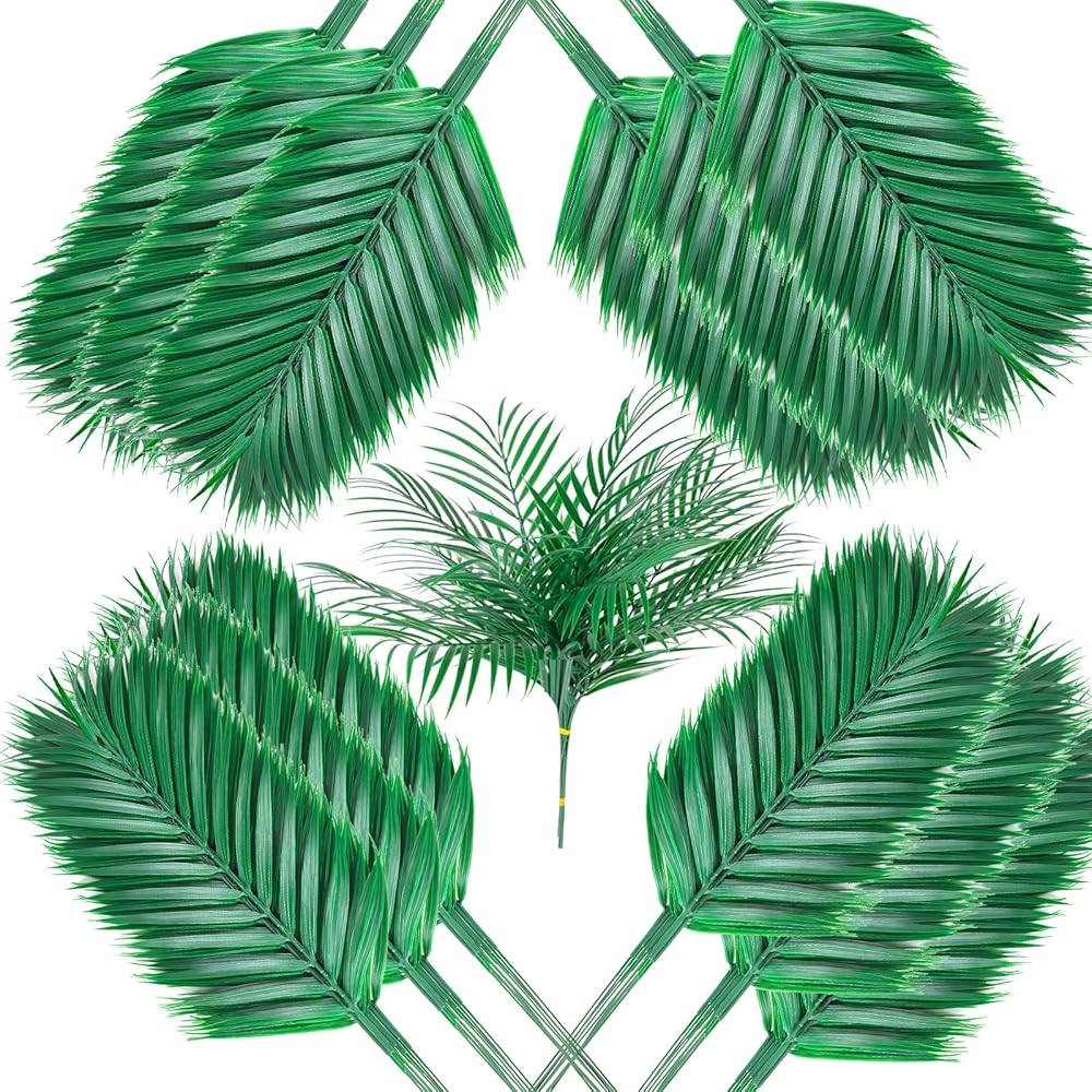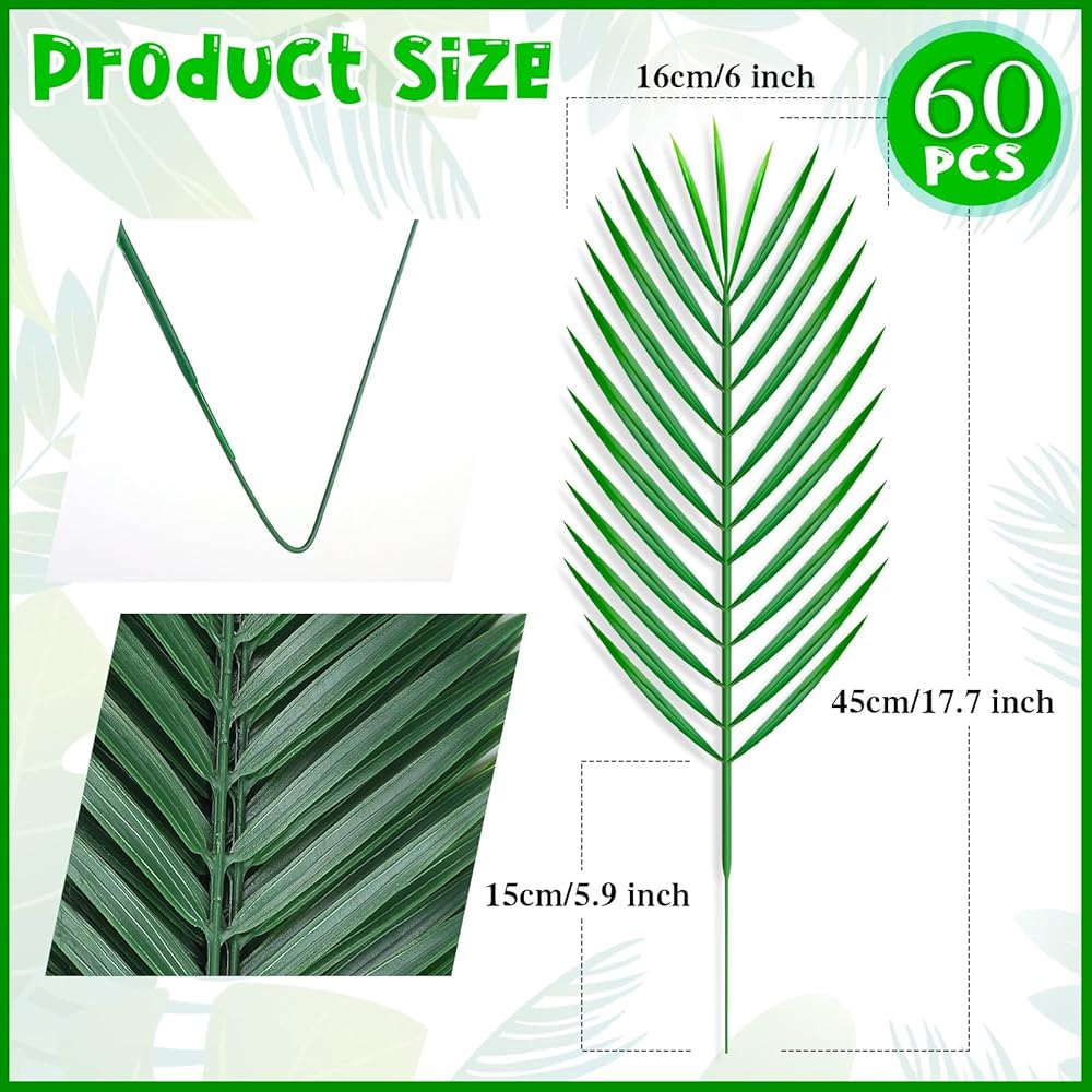 PACKAGE CONTENTS: Set includes 60 pieces of artificial palm leaves made from high-quality synthetic materials for long-lasting decorative use