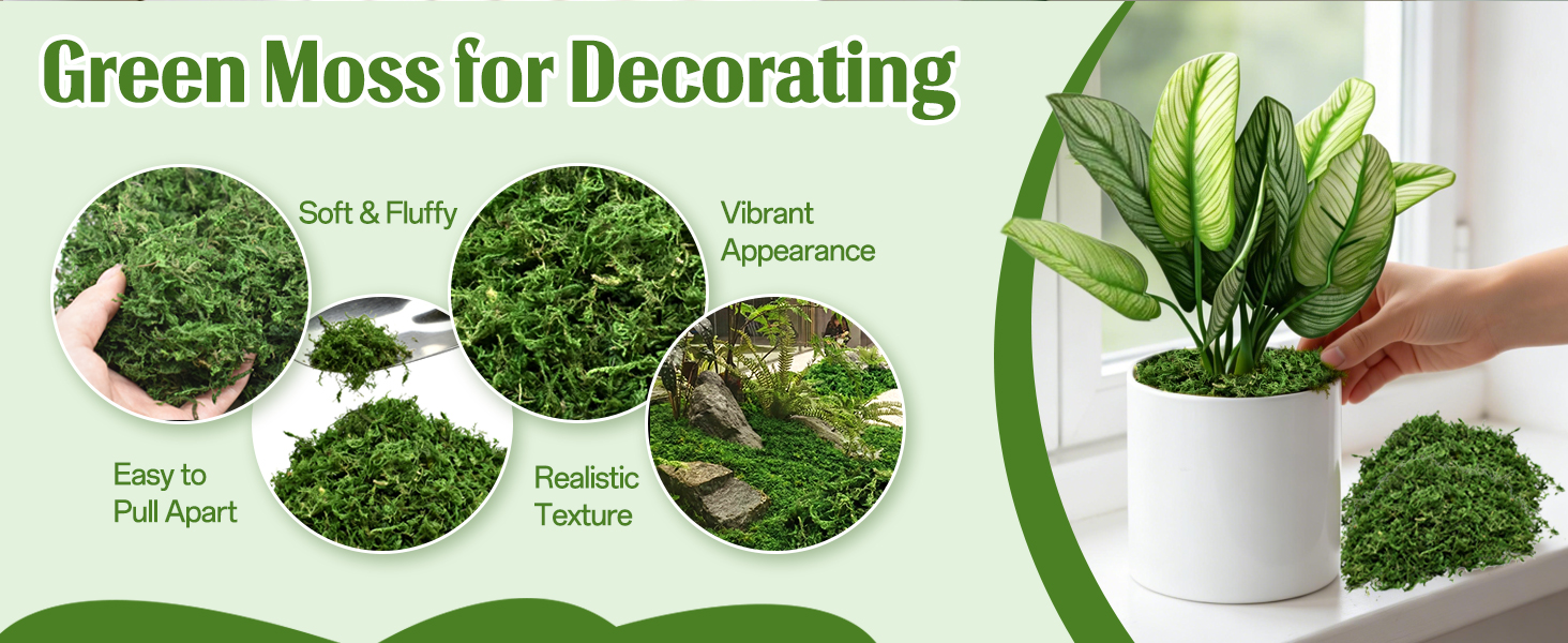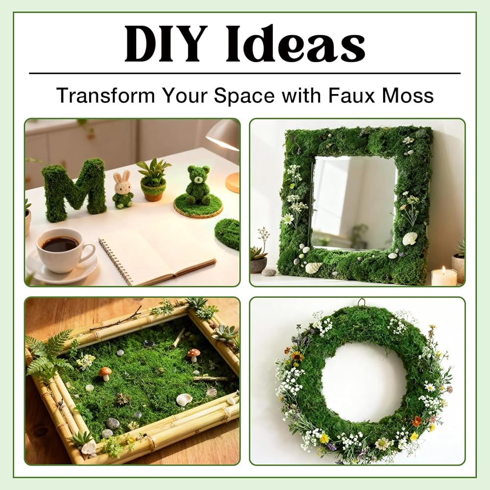 Premium Materials: Featuring a realistic texture and appearance, this high-quality faux moss is soft and fluffy—perfect for elevating interior decor with lasting reliability