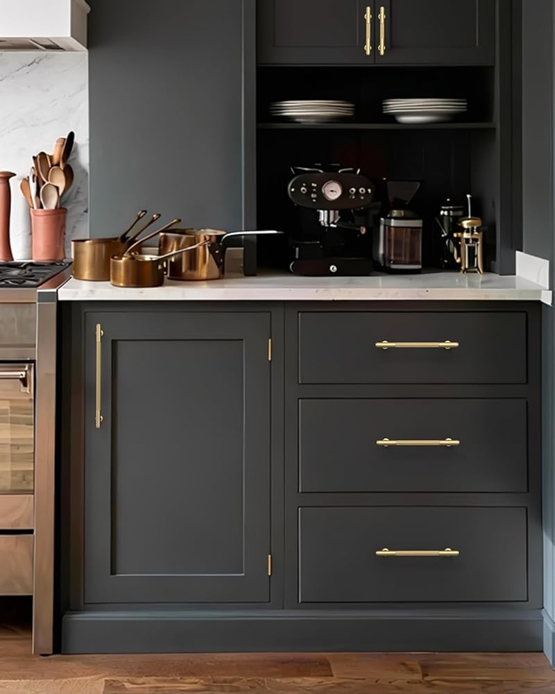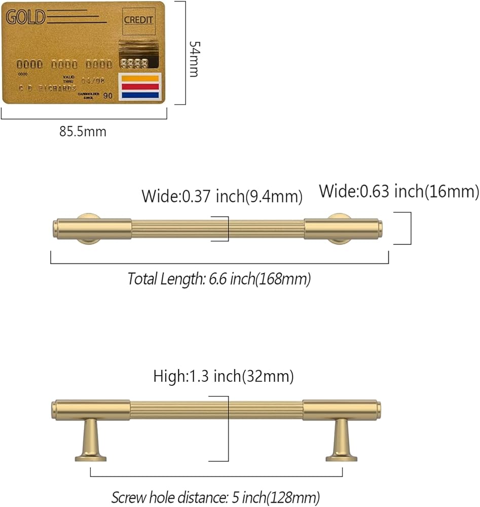 【PRECISE 5-INCH FIT & EASY INSTALL】With a 128mm (5-inch) hole center, these handles are a perfect fit for standard cabinets. The set includes two screw lengths (1” and 1.77”) for versatile and straightforward installation on various cabinet thicknesses.