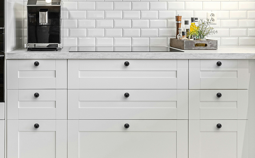 Precise measurements :The Matte Black cabinet knob features 1-1/4 inch (31.6mm) diameter and 1-1/10 inch (28mm) projection, with 1/2 inch (12.5mm) bottom diameter for a secure fit