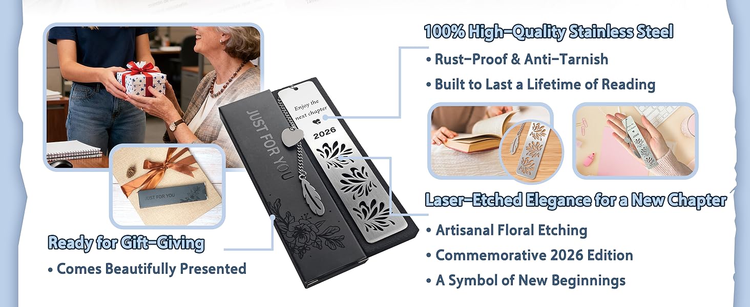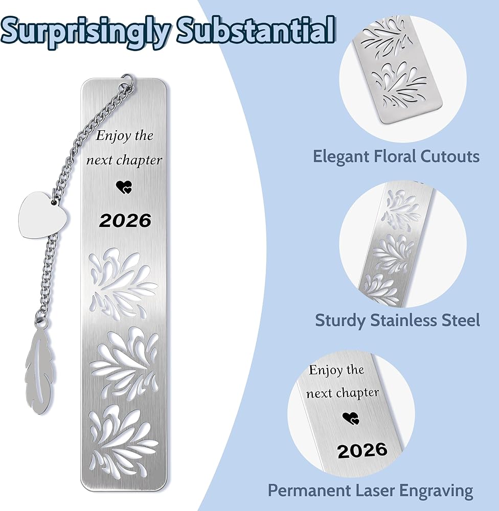💌 Elegant Floral & Heart Design Adorned with three delicate flowers and a heartfelt "2026", this bookmark symbolizes growth, new beginnings, and lasting memories. The intricate laser-etched design is both beautiful and durable, offering a lightweight yet substantial feel