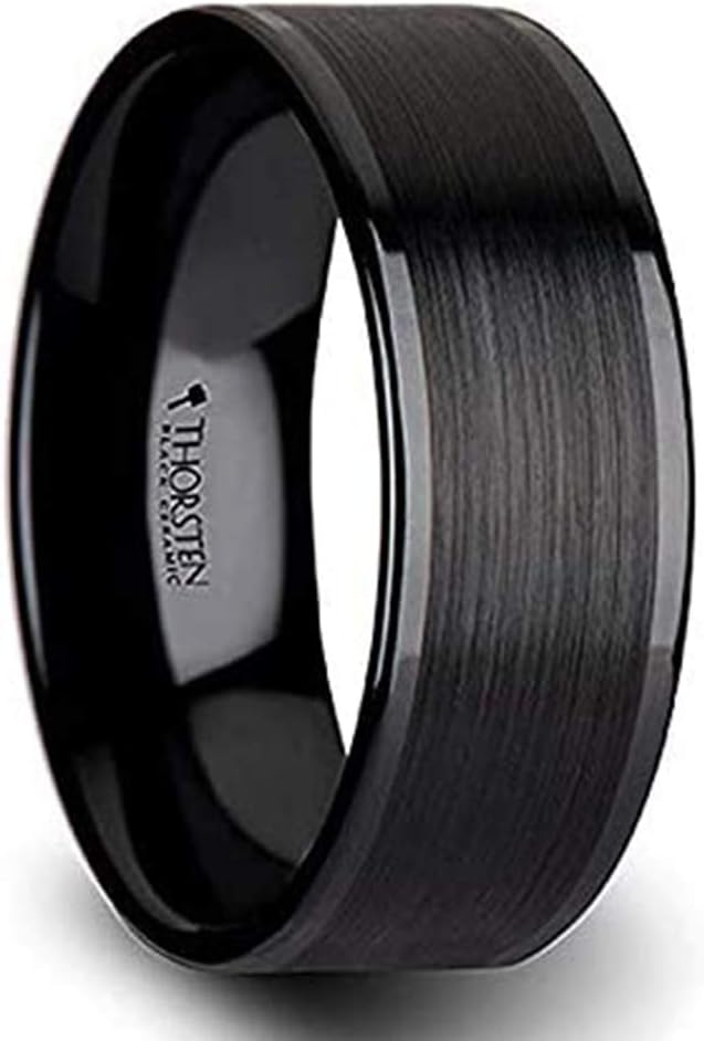 Octavius Flat Black Ceramic Ring with Brushed Center & Polished Edges by Thorsten Jewelry - 8mm in Kuwait