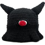 A statement piece blending striking aesthetics with everyday wearability. This hat features prominent 3D horns and a central single-eye motif, all crafted through traditional crochet techniques.
