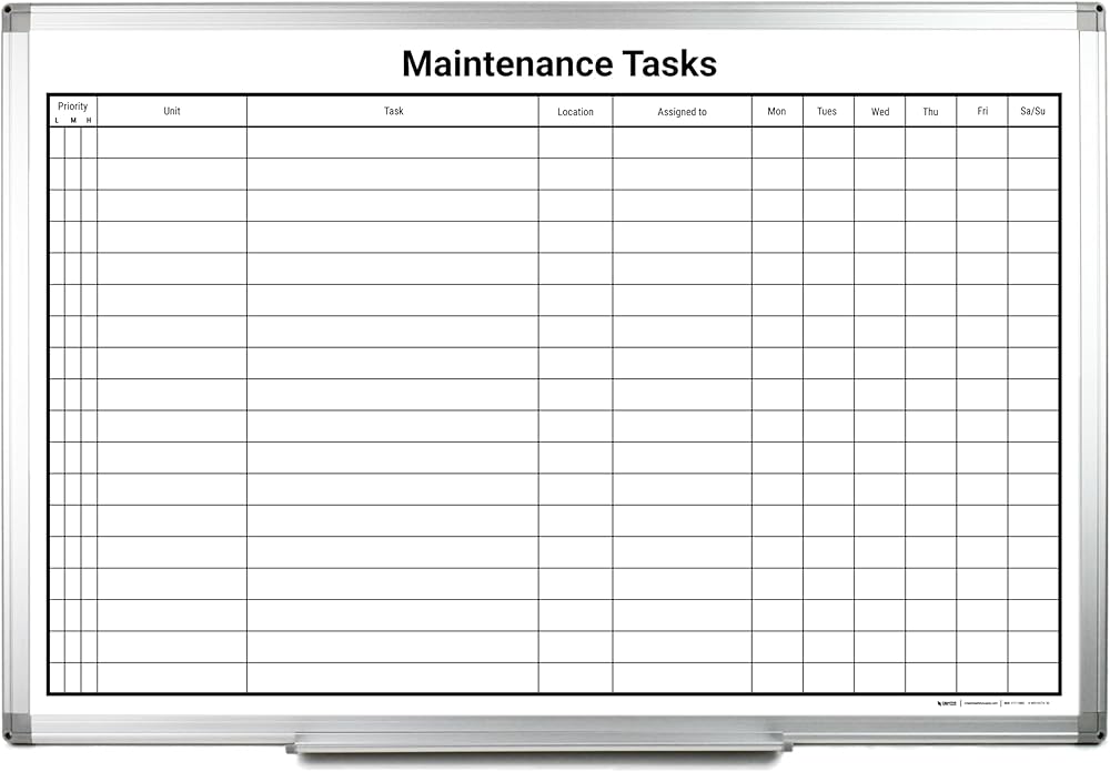 Maintenance Tasks Whiteboard 36"x 24"